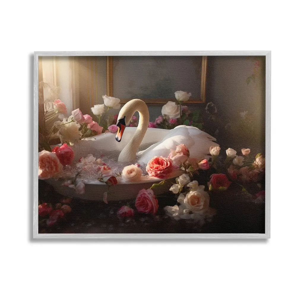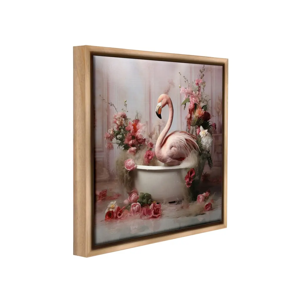 Elevate your home or office to the next level with Stupell Framed Floating Canvas Wall Art. Our premium hand-stretched canvas is mounted securely into a sturdy lightweight frame. The museum-style gap between the wrapped canvas and the box frame gives the illusion of floating artwork. Stupell Wall Art is made in the USA.Features: Dimensions: 18 x 1.7 x 18 Frame, 17 x 1.5 x 17 Canvas ArtFloating Frame Canvas Products are available in sizes 18"x18" and 25"x25". All Floating Frame Canvas Products have a 1.7" Depth.Wall Art is Ready to Hang with Hardware Free Hanging. No Installation required. For Easy Set Up Lean or Layer Artwork on Shelf or Against Wall. Artwork is Permently Fixed into the Frame.Our elevated 1.7" Thick Floating Frame is the perfect complement to our canvas style Wall Art. We use only the highest quality inks in house with industry leading printing solutions. Canvas is hand stretched over a durable wood foundation and then mounted securly into a Modern Box Frame. Made in the USA.Artwork Relates To: Bathroom, Animal, Mammal, Bathtub, Tub, Flower, Flamingo, BlossomDesign by Lazar Studio