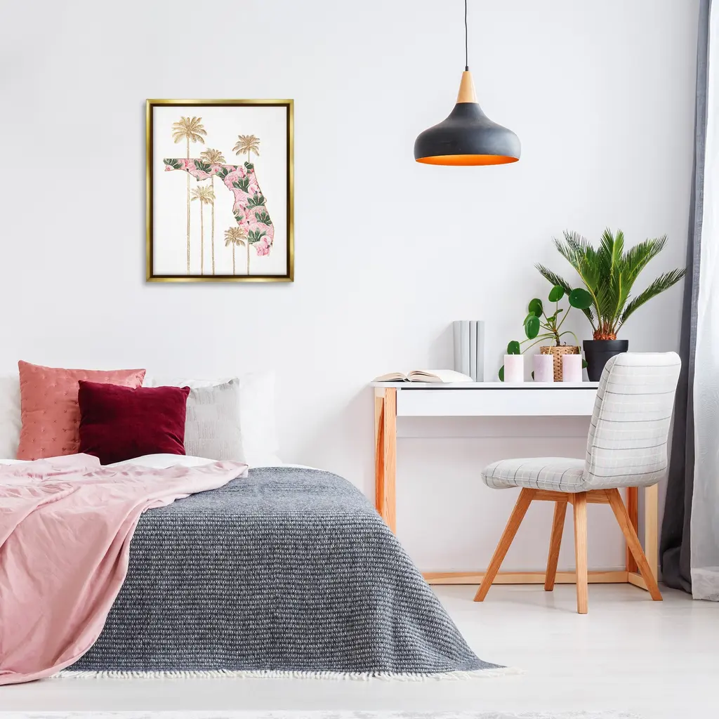 Elevate your home or office to the next level with Stupell Framed Floating Canvas Wall Art. Our premium hand-stretched canvas is mounted securely into a sturdy lightweight frame. The museum-style gap between the wrapped canvas and the box frame gives the illusion of floating artwork. Stupell Wall Art is made in the USA.Features: Dimensions: 17 x 1.7 x 21 Frame, 16 x 1.5 x 20 Canvas ArtFloating Frame Canvas Products are available in sizes 17"x21" and 25"x31". All Floating Frame Canvas Products have a 1.7" Depth.Wall Art is Ready to Hang with Hardware Free Hanging. No Installation required. For Easy Set Up Lean or Layer Artwork on Shelf or Against Wall. Artwork is Permently Fixed into the Frame.Our elevated 1.7" Thick Floating Frame is the perfect complement to our canvas style Wall Art. We use only the highest quality inks in house with industry leading printing solutions. Canvas is hand stretched over a durable wood foundation and then mounted securly into a Modern Box Frame. Made in the USA.Artwork Relates To: Tropical, Palm Tree, Florida, Pattern, Flamingo, Plant, Leaf, BirdDesign by Ziwei Li