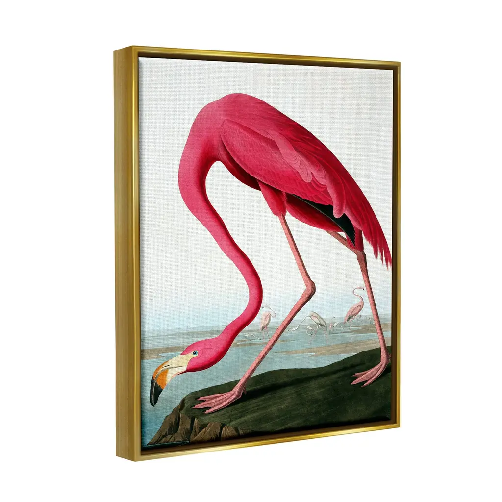 Elevate your home or office to the next level with Stupell Framed Floating Canvas Wall Art. Our premium hand-stretched canvas is mounted securely into a sturdy lightweight frame. The museum-style gap between the wrapped canvas and the box frame gives the illusion of floating artwork. Stupell Wall Art is made in the USA.Features: Dimensions: 17 x 1.7 x 21 Frame, 16 x 1.5 x 20 Canvas ArtFloating Frame Sizes Include Standard: 17 x 1.7 x 21 Oversized: 25 x 1.7 x 31Wall Art is Ready to Hang with Hardware Free Hanging. No installation required. For Easy Set Up Lean or Layer Artwork on Shelf or Against Wall.Our elevated 1.7" Thick Floating Frame is the perfect complement to our canvas style Wall Art. We use only the highest quality inks in house with industry leading printing solutions. Canvas is hand stretched over a durable wood foundation and then mounted securly into a Modern Box Frame. Made in the USA.Artwork Relates To: Animal, Bird, Flamingo, Beak, Nature, WildlifeDesign by Incado