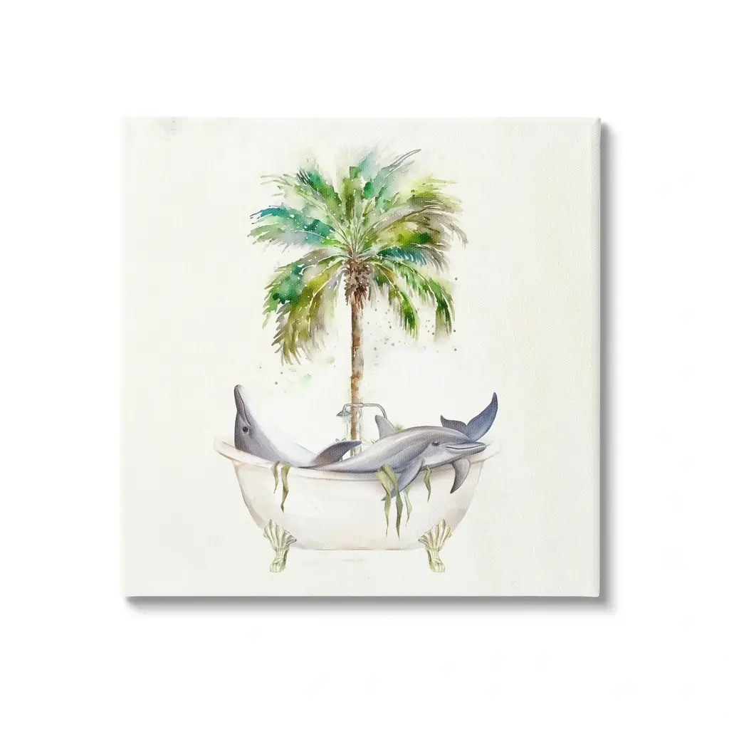 Stupell Flamingo Trio In Nautical Tub Seaside Bathroom Canvas Wall Art - Grey - 24 X 30