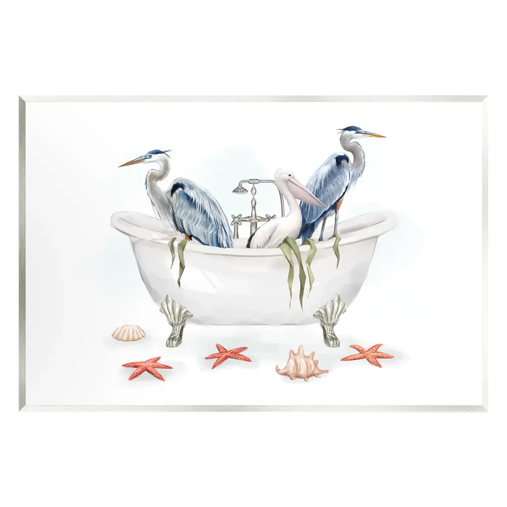 Stupell Flamingo Trio In Nautical Tub Seaside Bathroom Framed Wall Art - 24 X 30 - Grey