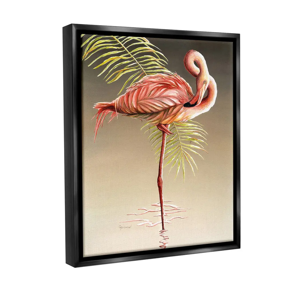 Elevate your home or office to the next level with Stupell Framed Floating Canvas Wall Art. Our premium hand-stretched canvas is mounted securely into a sturdy lightweight frame. The museum-style gap between the wrapped canvas and the box frame gives the illusion of floating artwork. Stupell Wall Art is made in the USA.Features: Dimensions: 17 x 1.7 x 21 Frame, 16 x 1.5 x 20 Canvas ArtFloating Frame Canvas Products are available in sizes 17"x21" and 25"x31". All Floating Frame Canvas Products have a 1.7" Depth.Wall Art is Ready to Hang with Hardware Free Hanging. No Installation required. For Easy Set Up Lean or Layer Artwork on Shelf or Against Wall. Artwork is Permently Fixed into the Frame.Our elevated 1.7" Thick Floating Frame is the perfect complement to our canvas style Wall Art. We use only the highest quality inks in house with industry leading printing solutions. Canvas is hand stretched over a durable wood foundation and then mounted securly into a Modern Box Frame. Made in the USA.Artwork Relates To: Animal, Bird, Flamingo, Plant, Leaf, Botanical, Tropical, Water, RippleDesign by Christine Reichow