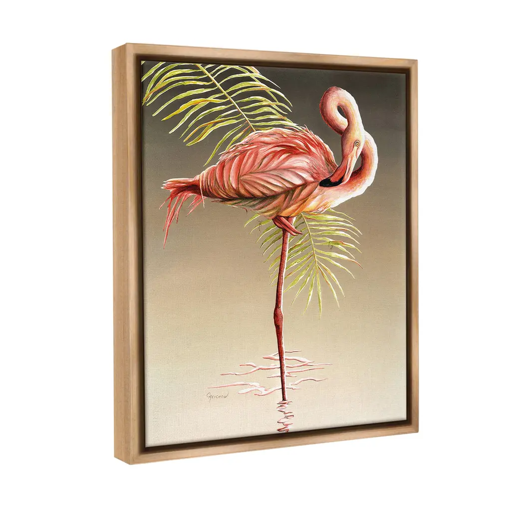 Elevate your home or office to the next level with Stupell Framed Floating Canvas Wall Art. Our premium hand-stretched canvas is mounted securely into a sturdy lightweight frame. The museum-style gap between the wrapped canvas and the box frame gives the illusion of floating artwork. Stupell Wall Art is made in the USA.Features: Dimensions: 17 x 1.7 x 21 Frame, 16 x 1.5 x 20 Canvas ArtFloating Frame Canvas Products are available in sizes 17"x21" and 25"x31". All Floating Frame Canvas Products have a 1.7" Depth.Wall Art is Ready to Hang with Hardware Free Hanging. No Installation required. For Easy Set Up Lean or Layer Artwork on Shelf or Against Wall. Artwork is Permently Fixed into the Frame.Our elevated 1.7" Thick Floating Frame is the perfect complement to our canvas style Wall Art. We use only the highest quality inks in house with industry leading printing solutions. Canvas is hand stretched over a durable wood foundation and then mounted securly into a Modern Box Frame. Made in the USA.Artwork Relates To: Animal, Bird, Flamingo, Plant, Leaf, Botanical, Tropical, Water, RippleDesign by Christine Reichow