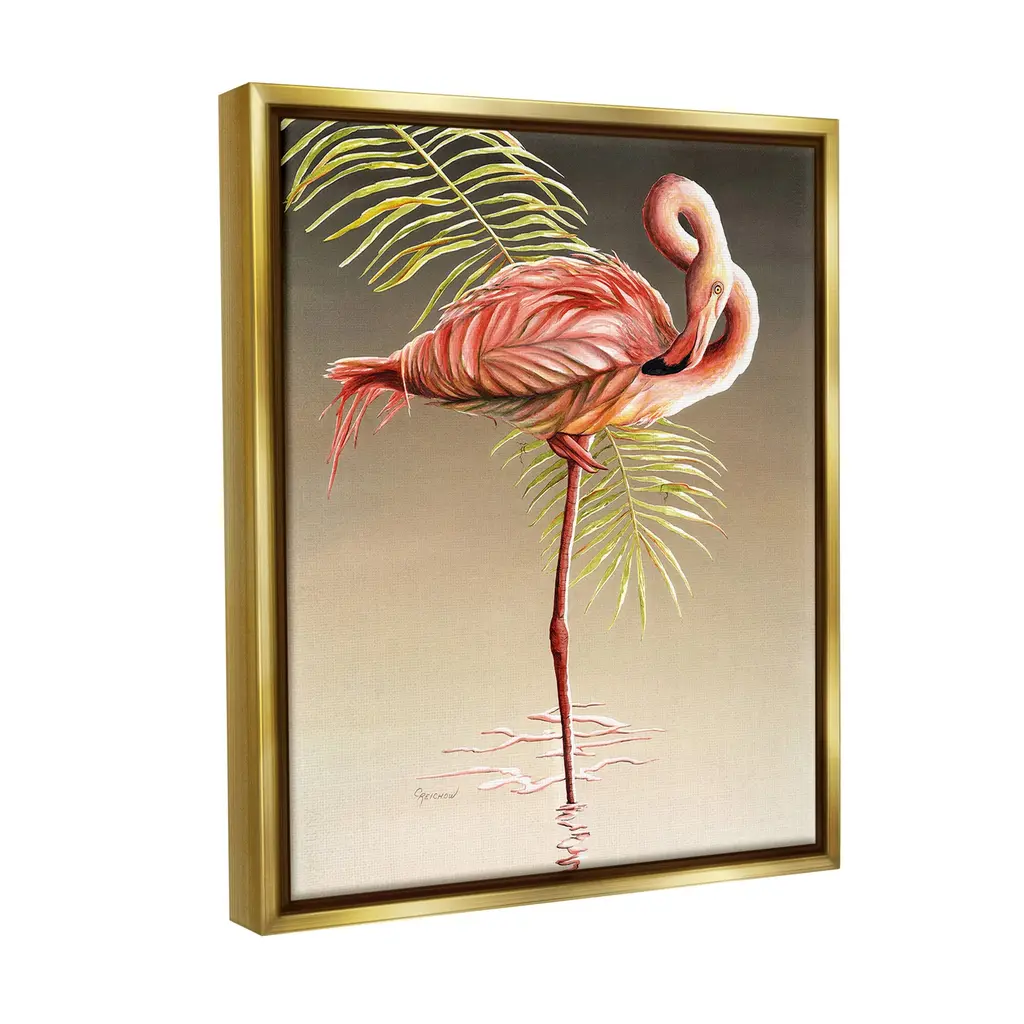Elevate your home or office to the next level with Stupell Framed Floating Canvas Wall Art. Our premium hand-stretched canvas is mounted securely into a sturdy lightweight frame. The museum-style gap between the wrapped canvas and the box frame gives the illusion of floating artwork. Stupell Wall Art is made in the USA.Features: Dimensions: 17 x 1.7 x 21 Frame, 16 x 1.5 x 20 Canvas ArtFloating Frame Canvas Products are available in sizes 17"x21" and 25"x31". All Floating Frame Canvas Products have a 1.7" Depth.Wall Art is Ready to Hang with Hardware Free Hanging. No Installation required. For Easy Set Up Lean or Layer Artwork on Shelf or Against Wall. Artwork is Permently Fixed into the Frame.Our elevated 1.7" Thick Floating Frame is the perfect complement to our canvas style Wall Art. We use only the highest quality inks in house with industry leading printing solutions. Canvas is hand stretched over a durable wood foundation and then mounted securly into a Modern Box Frame. Made in the USA.Artwork Relates To: Animal, Bird, Flamingo, Plant, Leaf, Botanical, Tropical, Water, RippleDesign by Christine Reichow