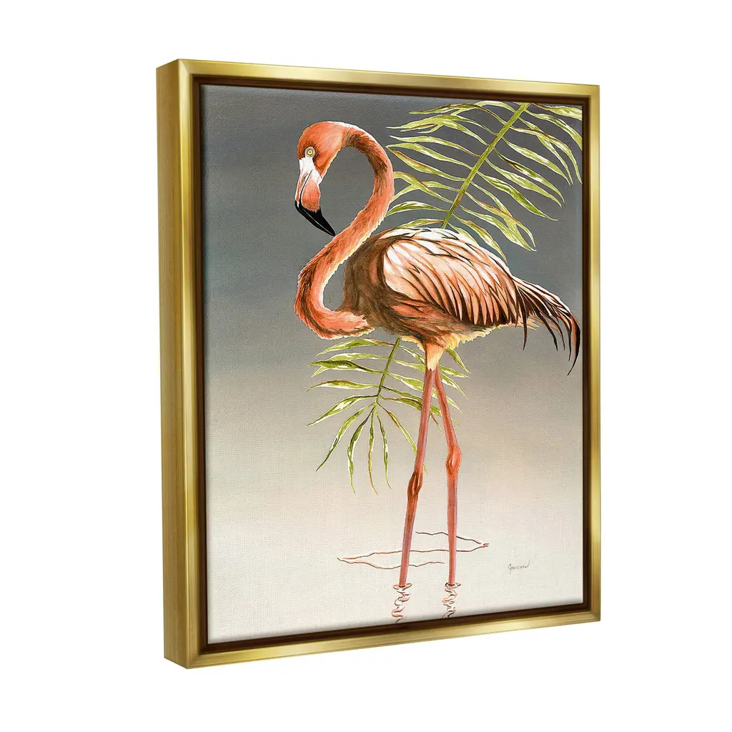 Elevate your home or office to the next level with Stupell Framed Floating Canvas Wall Art. Our premium hand-stretched canvas is mounted securely into a sturdy lightweight frame. The museum-style gap between the wrapped canvas and the box frame gives the illusion of floating artwork. Stupell Wall Art is made in the USA.Features: Dimensions: 17 x 1.7 x 21 Frame, 16 x 1.5 x 20 Canvas ArtFloating Frame Canvas Products are available in sizes 17"x21" and 25"x31". All Floating Frame Canvas Products have a 1.7" Depth.Wall Art is Ready to Hang with Hardware Free Hanging. No Installation required. For Easy Set Up Lean or Layer Artwork on Shelf or Against Wall. Artwork is Permently Fixed into the Frame.Our elevated 1.7" Thick Floating Frame is the perfect complement to our canvas style Wall Art. We use only the highest quality inks in house with industry leading printing solutions. Canvas is hand stretched over a durable wood foundation and then mounted securly into a Modern Box Frame. Made in the USA.Artwork Relates To: Animal, Bird, Flamingo, Tropical, Leaf, Plant, Botanical, Water, RippleDesign by Christine Reichow