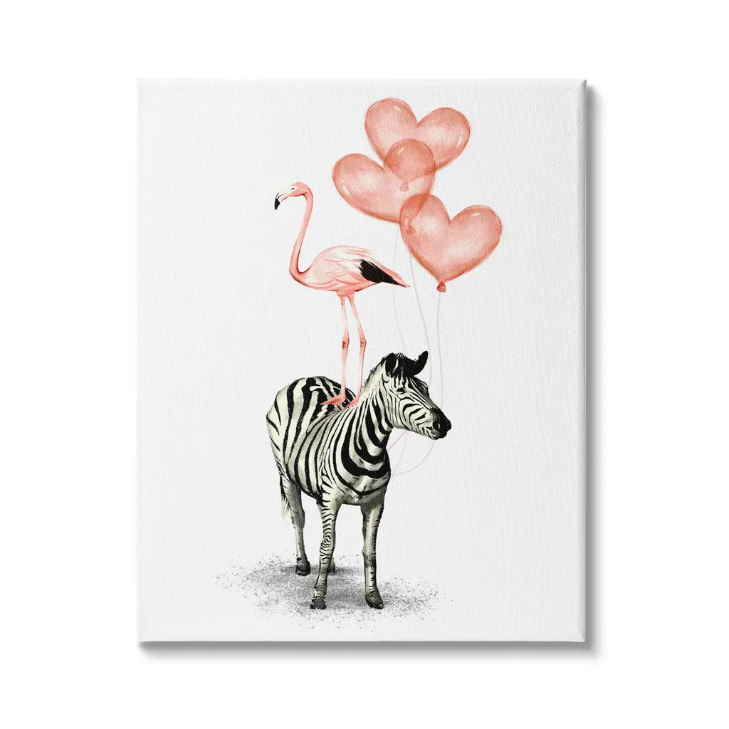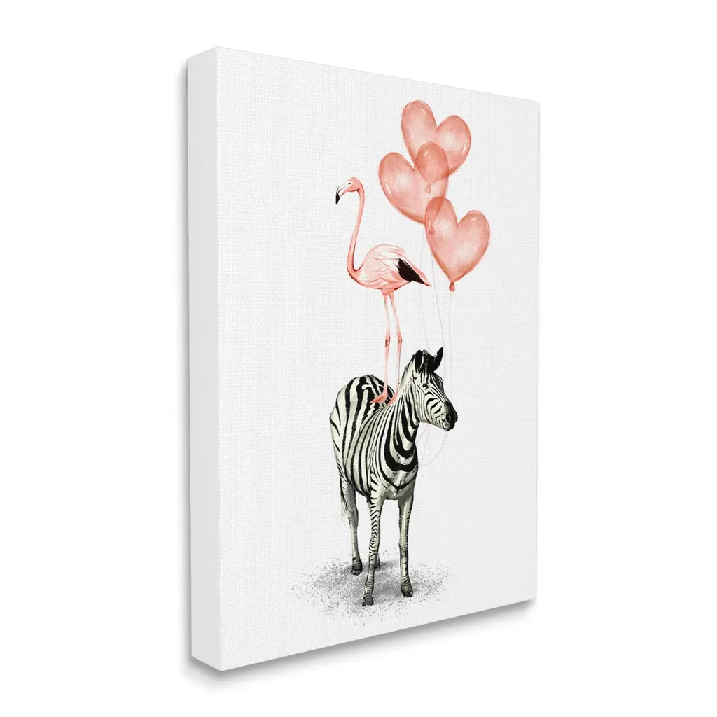 Stupell Flamingo Zebra Animal Stack Pink Heart Shape Balloons Canvas Wall Art - White - 24 X 30