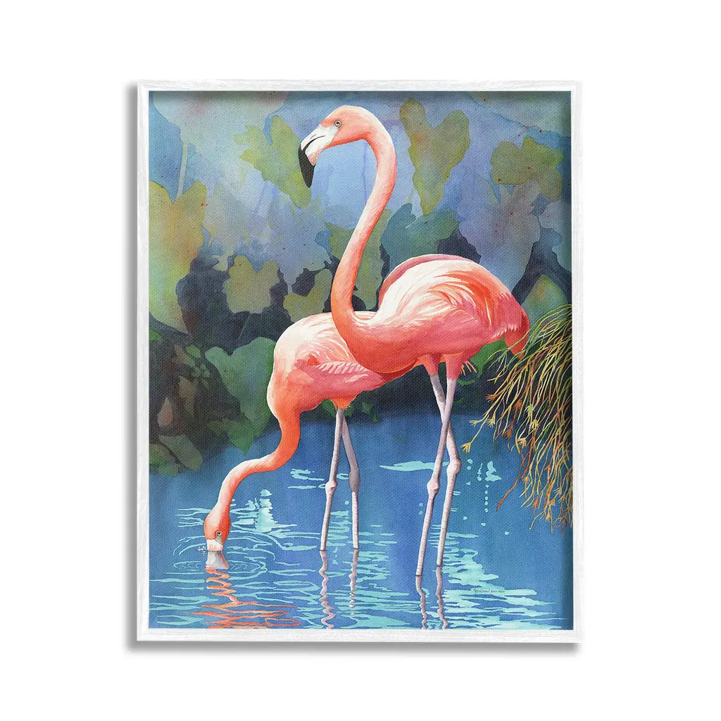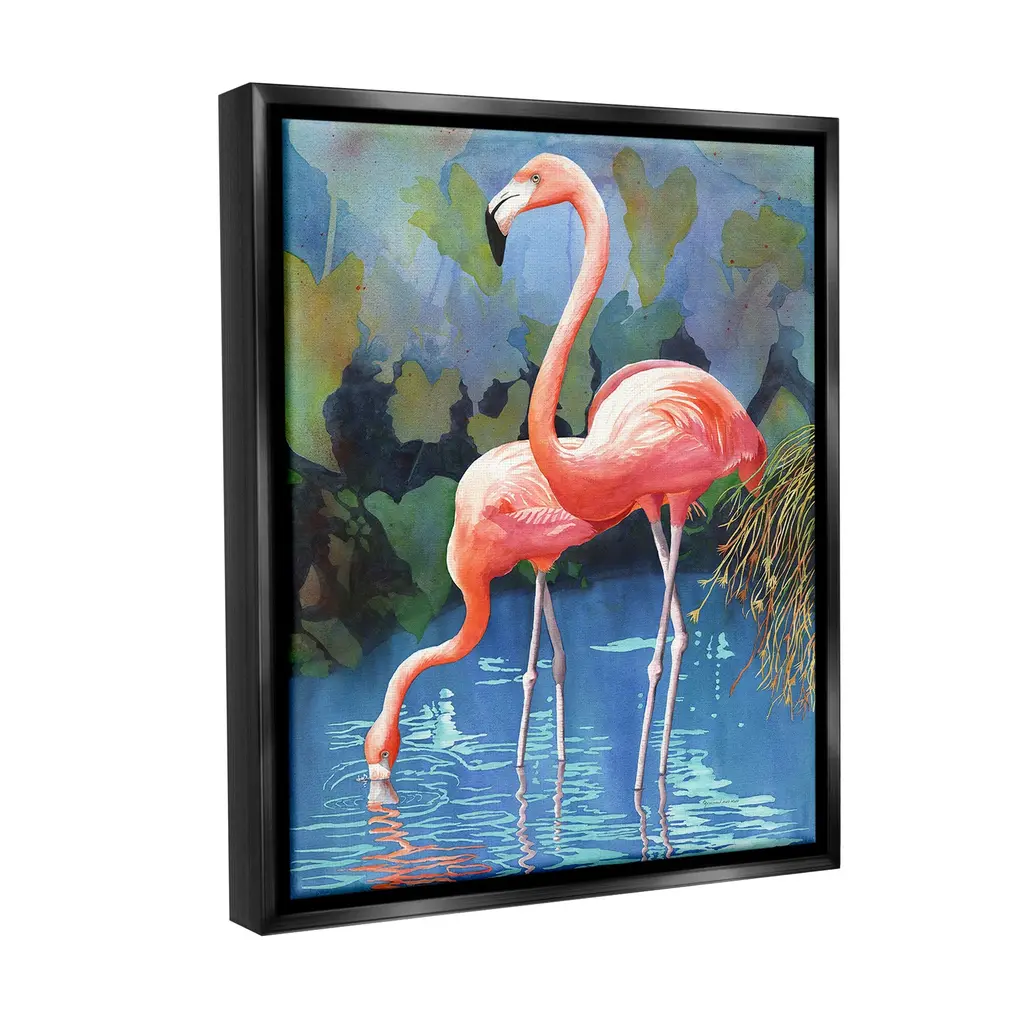 Elevate your home or office to the next level with Stupell Framed Floating Canvas Wall Art. Our premium hand-stretched canvas is mounted securely into a sturdy lightweight frame. The museum-style gap between the wrapped canvas and the box frame gives the illusion of floating artwork. Stupell Wall Art is made in the USA.Features: Dimensions: 17 x 1.7 x 21 Frame, 16 x 1.5 x 20 Canvas ArtFloating Frame Canvas Products are available in sizes 17"x21" and 25"x31". All Floating Frame Canvas Products have a 1.7" Depth.Wall Art is Ready to Hang with Hardware Free Hanging. No Installation required. For Easy Set Up Lean or Layer Artwork on Shelf or Against Wall. Artwork is Permently Fixed into the Frame.Our elevated 1.7" Thick Floating Frame is the perfect complement to our canvas style Wall Art. We use only the highest quality inks in house with industry leading printing solutions. Canvas is hand stretched over a durable wood foundation and then mounted securly into a Modern Box Frame. Made in the USA.Artwork Relates To: Animal, Bird, Flamingo, Tropical, Leaf, Plant, Botanical, Water, Ripple, Landscape, Nature, PondDesign by Christine Reichow