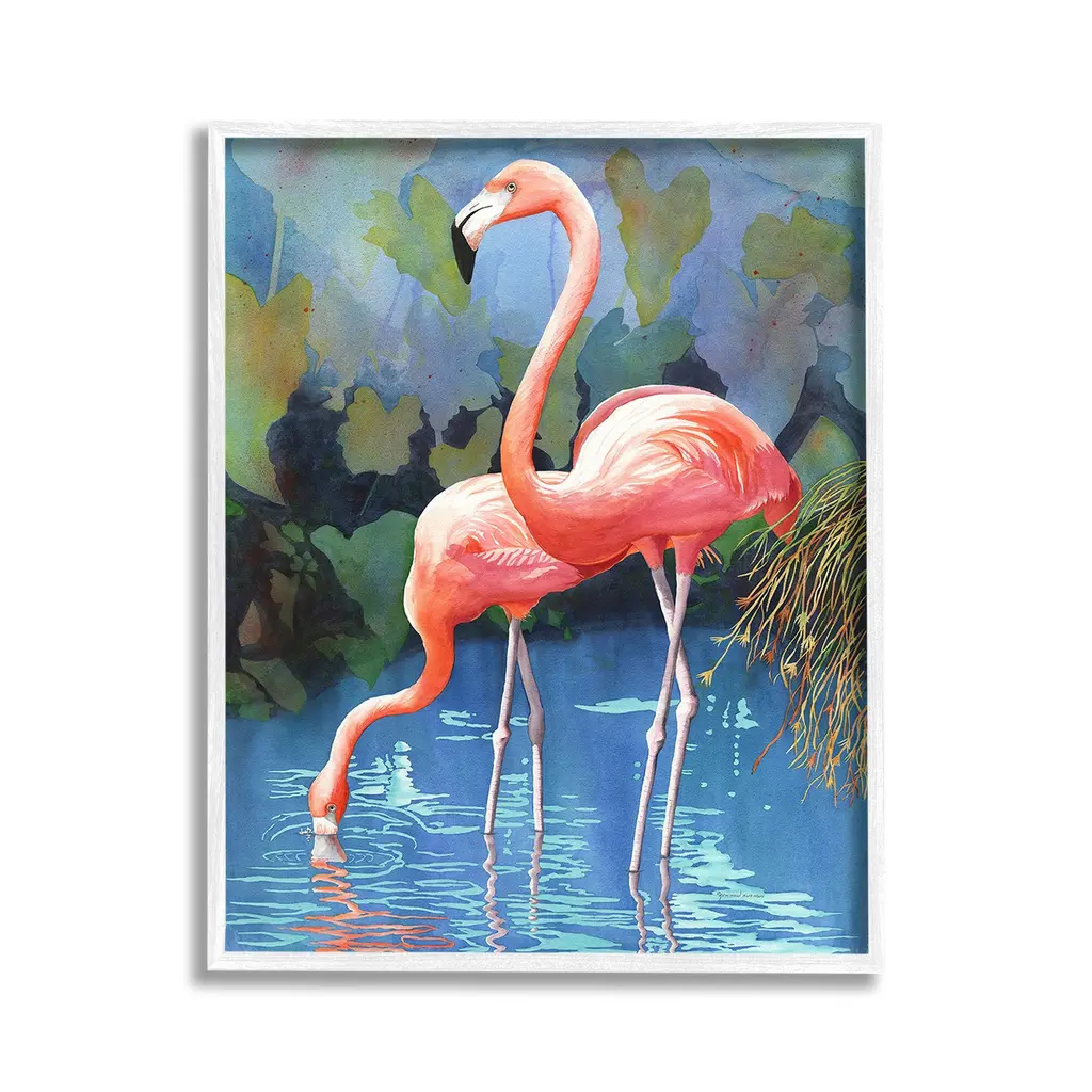 Add dimension to any room with our textured Framed Giclee Artwork. Our framed artwork is securely mounted into a 1.5-inch thick wood grain frame and ready to hang. Frames are available in three alluring styles: black, gray farmhouse and white. In addition, you should check out our oversized options if you want a statement piece. Stupell Wall Art is made in the USA.Features: Dimensions: 11 x 1.5 x 14 FramedFramed Giclee Products are available in the sizes 11"x14", 16"x20" or 24"x30". All Framed Giclee Products have a 1.5" Depth. Wall Art is Ready to Hang with Hardware Free Hanging. No installation required. For Easy Set Up Lean or Layer Artwork on Shelf or Against Wall.Our giclée prints are carefully mounted on a durable MDF backing, and then perfectly finished in a 1.5 inch thick woodgrain frame. Mounted frame colors include black, gray farmhouse and white. Made In USA.Artwork Relates To: Animal, Bird, Flamingo, Tropical, Leaf, Plant, Botanical, Water, Ripple, Landscape, Nature, PondDesign by Christine Reichow