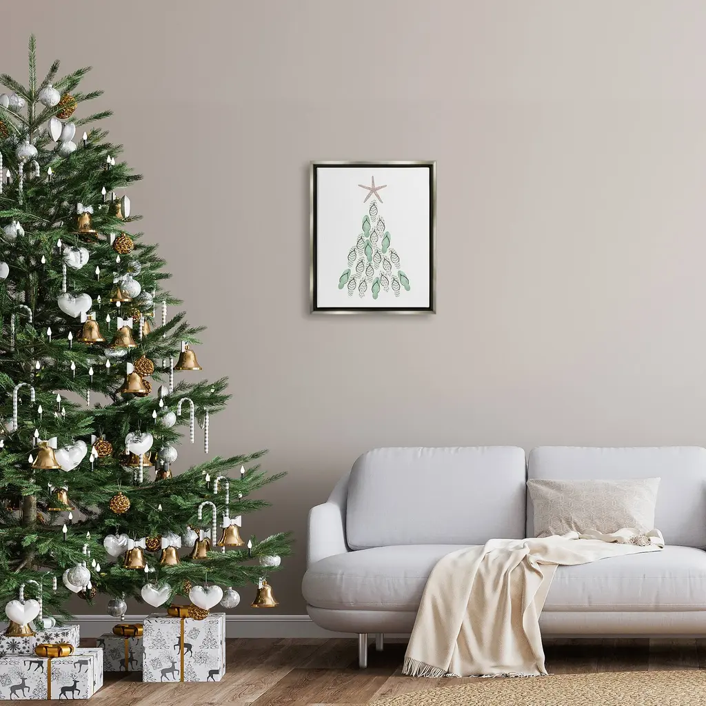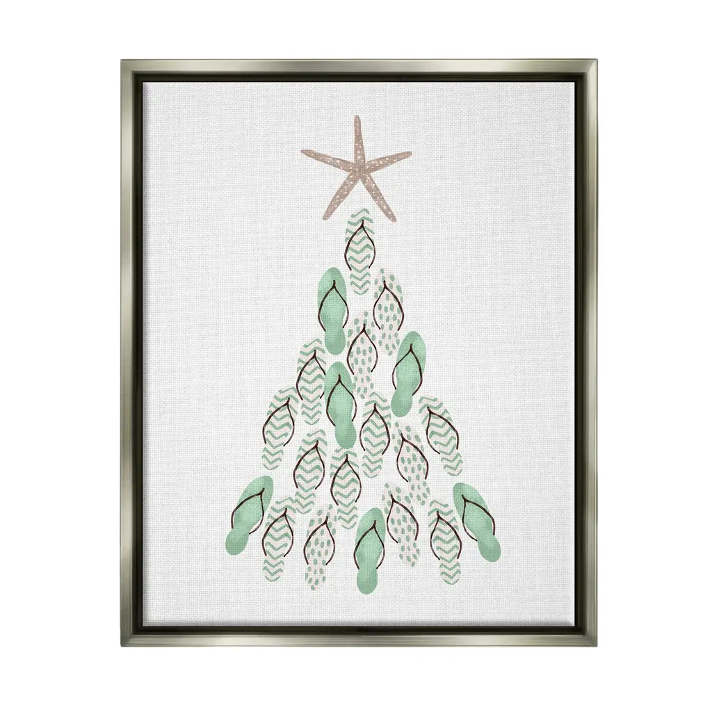 Elevate your home or office to the next level with Stupell Framed Floating Canvas Wall Art. Our premium hand-stretched canvas is mounted securely into a sturdy lightweight frame. The museum-style gap between the wrapped canvas and the box frame gives the illusion of floating artwork. Stupell Wall Art is made in the USA.Features: Dimensions: 17 x 1.7 x 21 Frame, 16 x 1.5 x 20 Canvas ArtFloating Frame Sizes Include Standard: 17 x 1.7 x 21 Oversized: 25 x 1.7 x 31Wall Art is Ready to Hang - No Installation or Hardware Needed. For Easy Set Up Lean or Layer Artwork on Shelf or Against Wall.Our elevated 1.7" Thick Floating Frame is the perfect complement to our canvas style Wall Art. We use only the highest quality inks in house with industry leading printing solutions. Canvas is hand stretched over a durable wood foundation and then mounted securly into a Modern Box Frame. Made in the USA.Artwork Relates To: Christmas, Christmas Tree, Holiday, Sea Life, Starfish, Flip FlopDesign by Ziwei Li