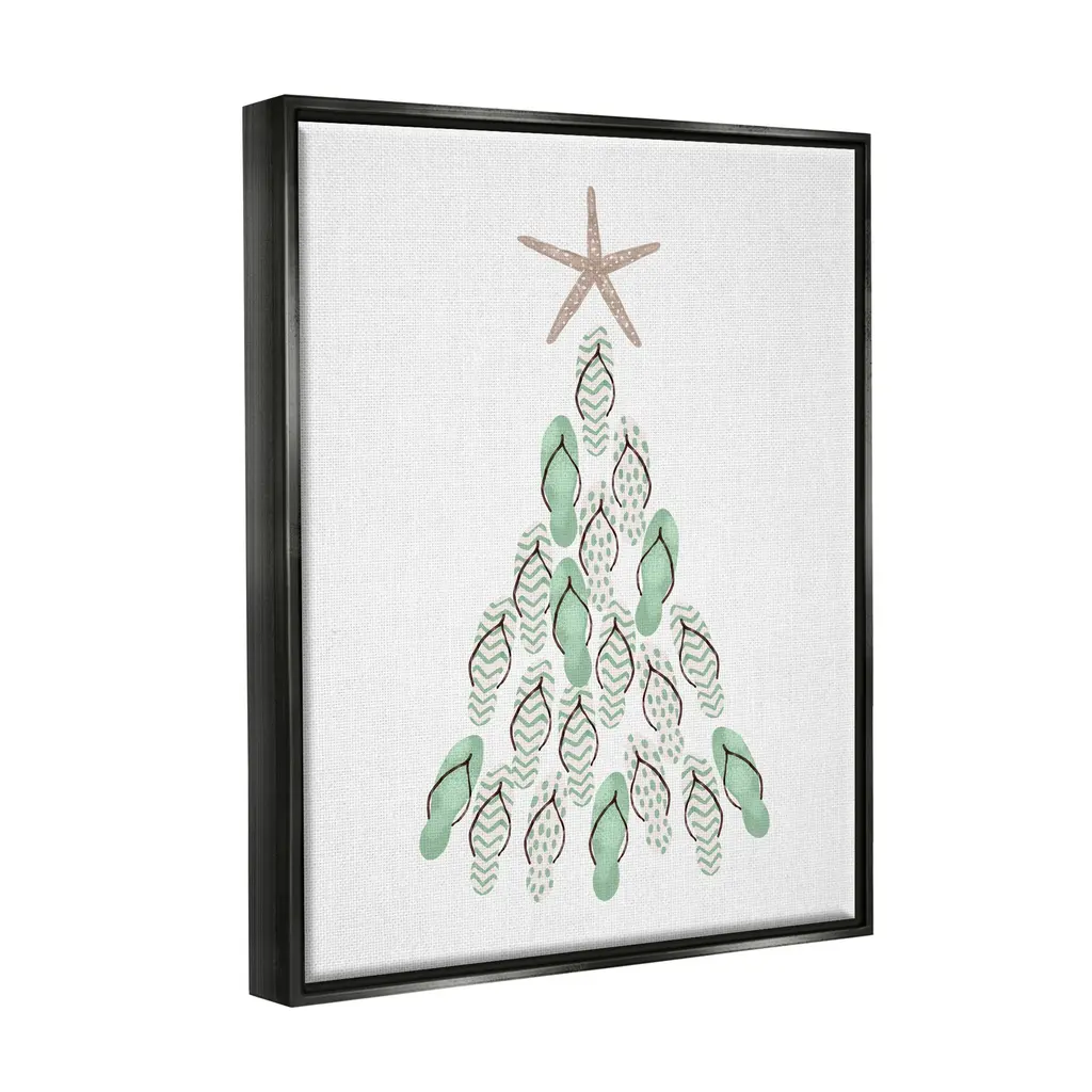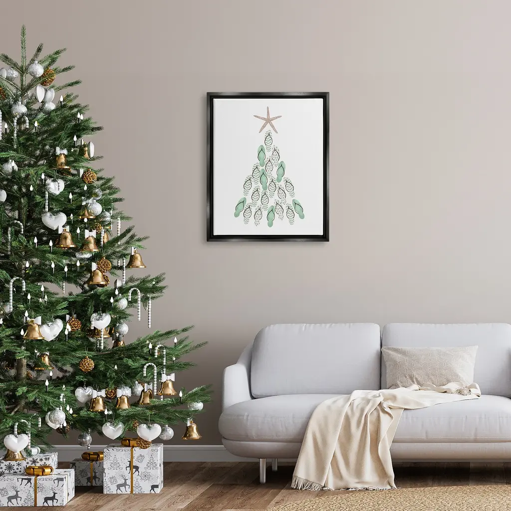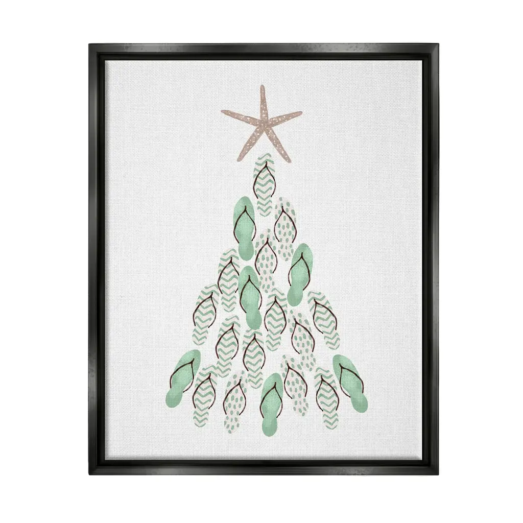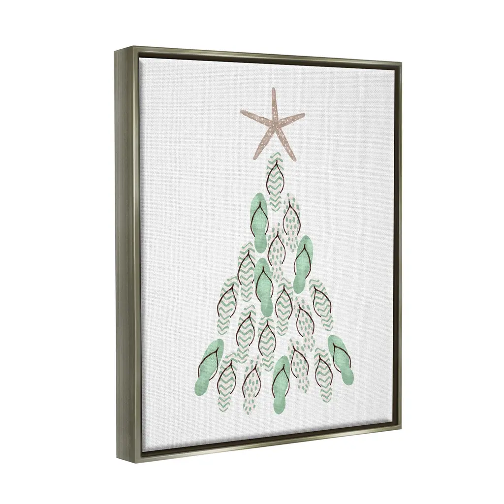 Elevate your home or office to the next level with Stupell Framed Floating Canvas Wall Art. Our premium hand-stretched canvas is mounted securely into a sturdy lightweight frame. The museum-style gap between the wrapped canvas and the box frame gives the illusion of floating artwork. Stupell Wall Art is made in the USA.Features: Dimensions: 17 x 1.7 x 21 Frame, 16 x 1.5 x 20 Canvas ArtFloating Frame Sizes Include Standard: 17 x 1.7 x 21 Oversized: 25 x 1.7 x 31Wall Art is Ready to Hang - No Installation or Hardware Needed. For Easy Set Up Lean or Layer Artwork on Shelf or Against Wall.Our elevated 1.7" Thick Floating Frame is the perfect complement to our canvas style Wall Art. We use only the highest quality inks in house with industry leading printing solutions. Canvas is hand stretched over a durable wood foundation and then mounted securly into a Modern Box Frame. Made in the USA.Artwork Relates To: Christmas, Christmas Tree, Holiday, Sea Life, Starfish, Flip FlopDesign by Ziwei Li