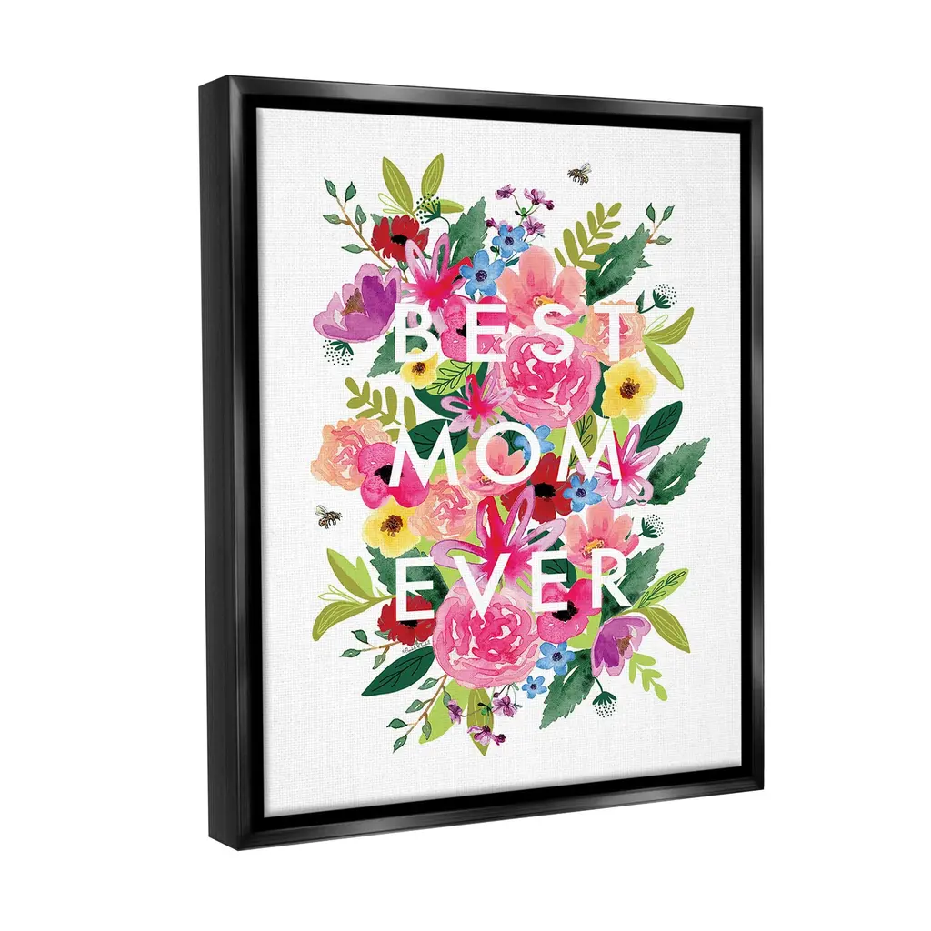 Stupell Floral Best Mom Ever Framed Floater Canvas Wall Art Design By Elizabeth Tyndall - 17 X 21 - Black