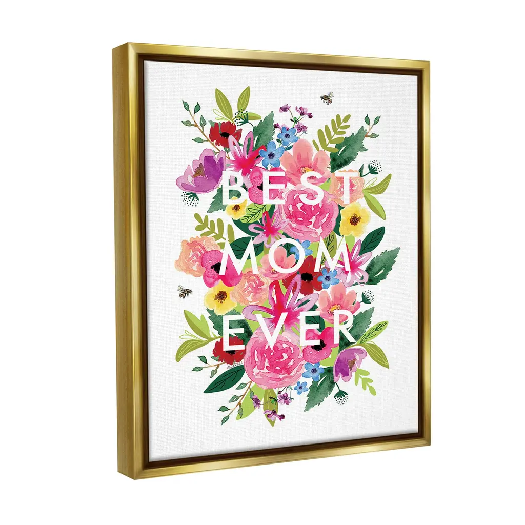 Stupell Floral Best Mom Ever Framed Floater Canvas Wall Art Design By Elizabeth Tyndall - 25 X 31 - Gold