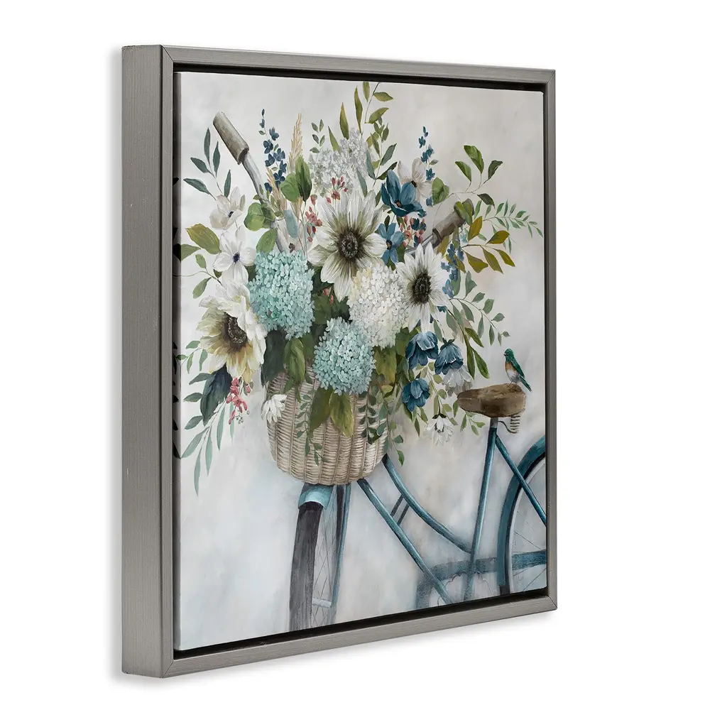 Elevate your home or office to the next level with Stupell Framed Floating Canvas Wall Art. Our premium hand-stretched canvas is mounted securely into a sturdy lightweight frame. The museum-style gap between the wrapped canvas and the box frame gives the illusion of floating artwork. Stupell Wall Art is made in the USA.Features: Dimensions: 18 x 1.7 x 18 Frame, 17 x 1.5 x 17 Canvas ArtFloating Frame Canvas Products are available in sizes 18"x18" and 25"x25". All Floating Frame Canvas Products have a 1.7" Depth.Wall Art is Ready to Hang with Hardware Free Hanging. No Installation required. For Easy Set Up Lean or Layer Artwork on Shelf or Against Wall. Artwork is Permently Fixed into the Frame.Our elevated 1.7" Thick Floating Frame is the perfect complement to our canvas style Wall Art. We use only the highest quality inks in house with industry leading printing solutions. Canvas is hand stretched over a durable wood foundation and then mounted securly into a Modern Box Frame. Made in the USA.Artwork Relates To: Flower, Flower Arrangement, Plant, Floral, Bicycle, Sunflower, Dahlia, Hydrangea, BikeDesign by Nan