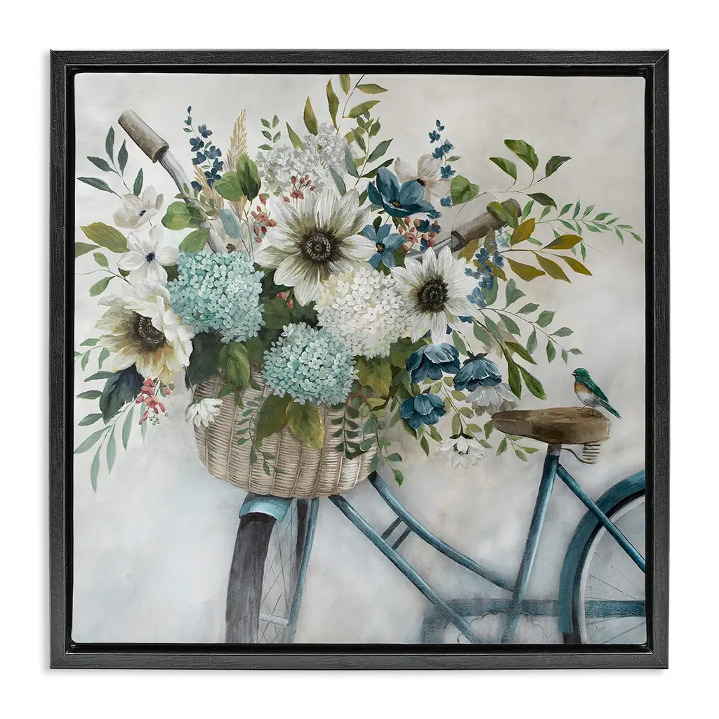 Elevate your home or office to the next level with Stupell Framed Floating Canvas Wall Art. Our premium hand-stretched canvas is mounted securely into a sturdy lightweight frame. The museum-style gap between the wrapped canvas and the box frame gives the illusion of floating artwork. Stupell Wall Art is made in the USA.Features: Dimensions: 18 x 1.7 x 18 Frame, 17 x 1.5 x 17 Canvas ArtFloating Frame Canvas Products are available in sizes 18"x18" and 25"x25". All Floating Frame Canvas Products have a 1.7" Depth.Wall Art is Ready to Hang with Hardware Free Hanging. No Installation required. For Easy Set Up Lean or Layer Artwork on Shelf or Against Wall. Artwork is Permently Fixed into the Frame.Our elevated 1.7" Thick Floating Frame is the perfect complement to our canvas style Wall Art. We use only the highest quality inks in house with industry leading printing solutions. Canvas is hand stretched over a durable wood foundation and then mounted securly into a Modern Box Frame. Made in the USA.Artwork Relates To: Flower, Flower Arrangement, Plant, Floral, Bicycle, Sunflower, Dahlia, Hydrangea, BikeDesign by Nan