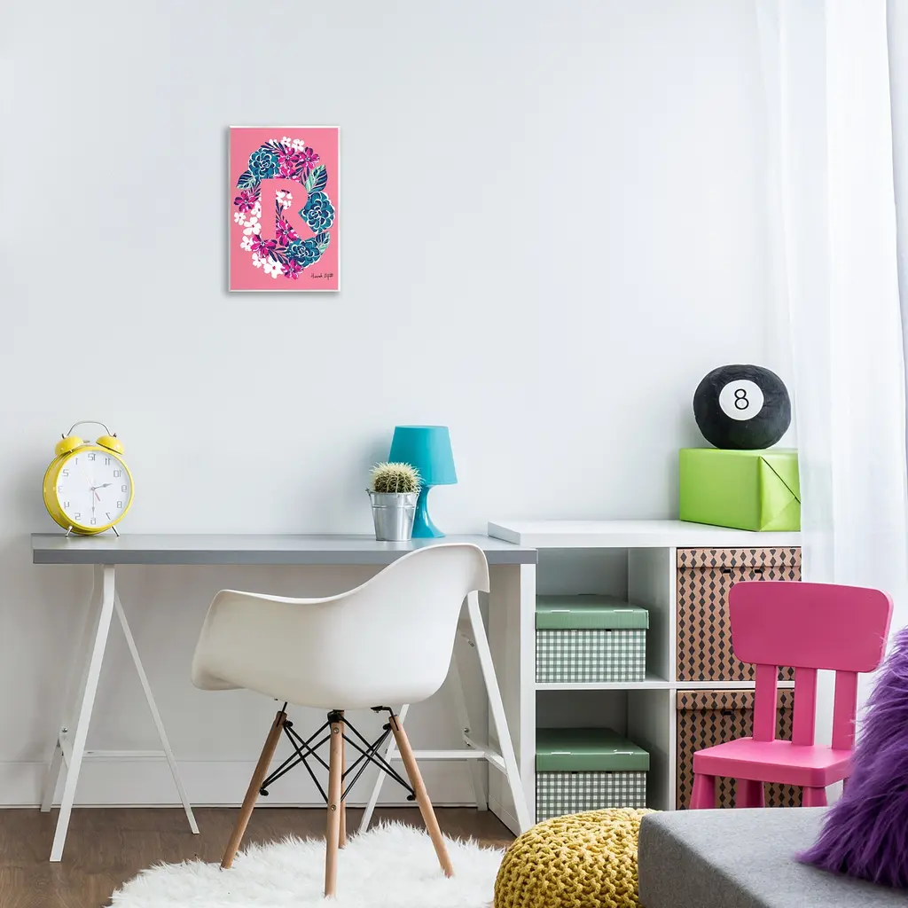 Our wall plaques start as high-quality lithograph prints mounted on durable 0.5-inch thick MDF wood. Each piece is hand finished and comes with a fresh layer of white foil on the sides to give it a crisp, clean look. Plaques arrive ready to hang without installation and come with removable plastic corners to keep them from damage in transit. Stupell Wall Art is made in the USA.Features: Dimensions: 10 x 0.5 x 15 InchesWall Plaque Product Sizes Include 10"x15" and 13"x19". All wall plaque products have a 0.5" Depth. Wall Art is Ready to Hang with Hardware Free Hanging. No installation required. For Easy Set Up Lean or Layer Artwork on Shelf or Against Wall.All of our wall plaques start off as high quality lithograph prints that are then mounted on durable 0.5 inch thick MDF wood. Each piece is hand finished and comes with a fresh layer of foil on the sides to give it a crisp clean look. Made In USA.Artwork Relates To: Letter, Monogram, Initial, Name, Flower, Floral, Bloom, Bold, BrightDesign by Hannah Louise Byatt