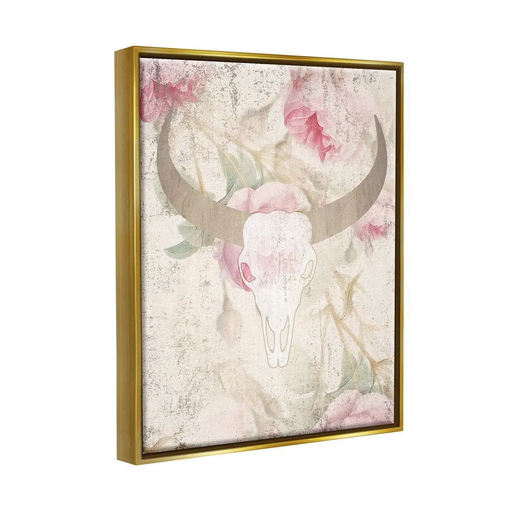 Elevate your home or office to the next level with Stupell Framed Floating Canvas Wall Art. Our premium hand-stretched canvas is mounted securely into a sturdy lightweight frame. The museum-style gap between the wrapped canvas and the box frame gives the illusion of floating artwork. Stupell Wall Art is made in the USA.Features: Dimensions: 17 x 1.7 x 21 Frame, 16 x 1.5 x 20 Canvas ArtFloating Frame Sizes Include Standard: 17 x 1.7 x 21 Oversized: 25 x 1.7 x 31Wall Art is Ready to Hang - No Installation or Hardware Needed. For Easy Set Up Lean or Layer Artwork on Shelf or Against Wall.Our elevated 1.7" Thick Floating Frame is the perfect complement to our canvas style Wall Art. We use only the highest quality inks in house with industry leading printing solutions. Canvas is hand stretched over a durable wood foundation and then mounted securly into a Modern Box Frame. Made in the USA.Artwork Relates To: Cattle Skull, Skull, Animal, Flower, Floral, RoseDesign by Lil' Rue