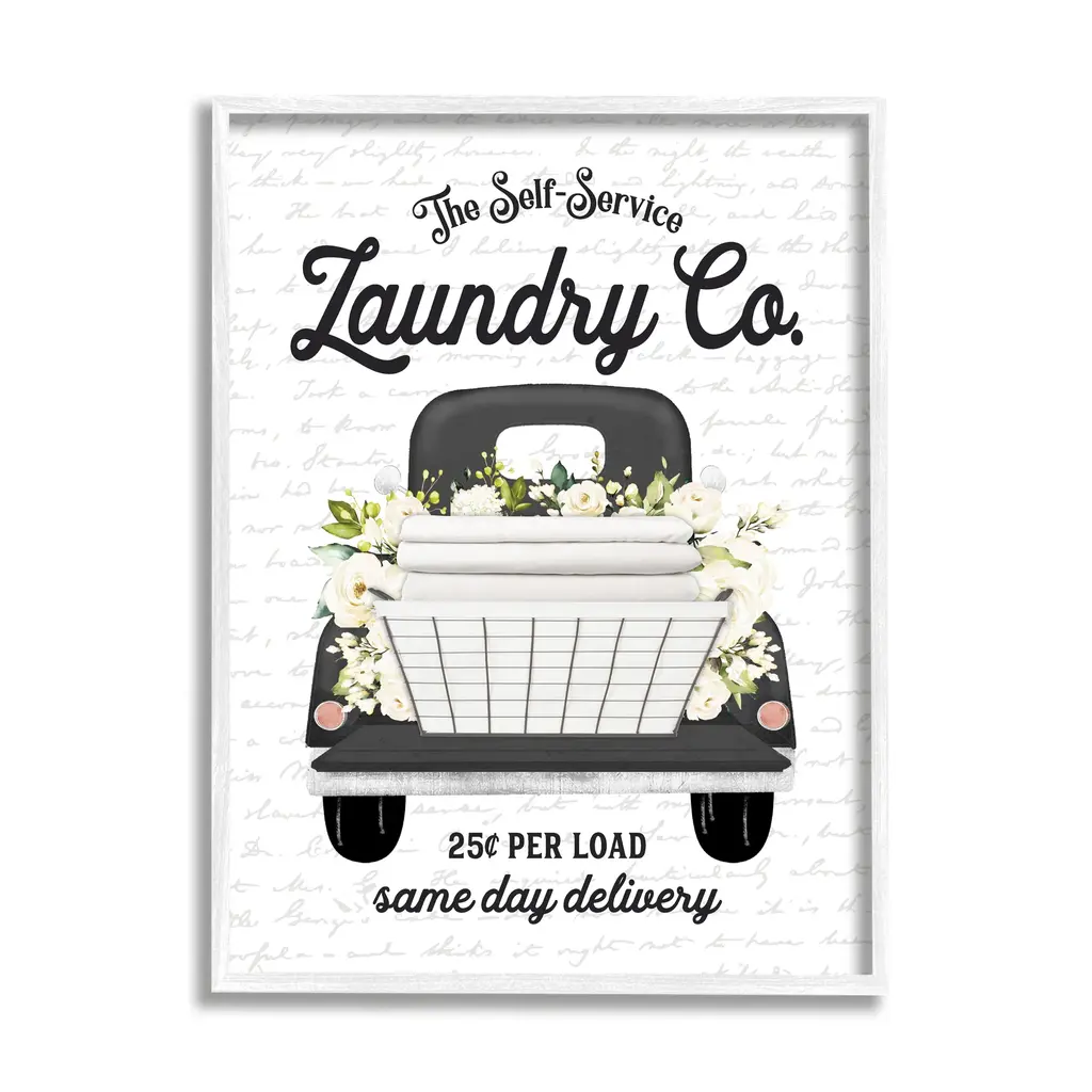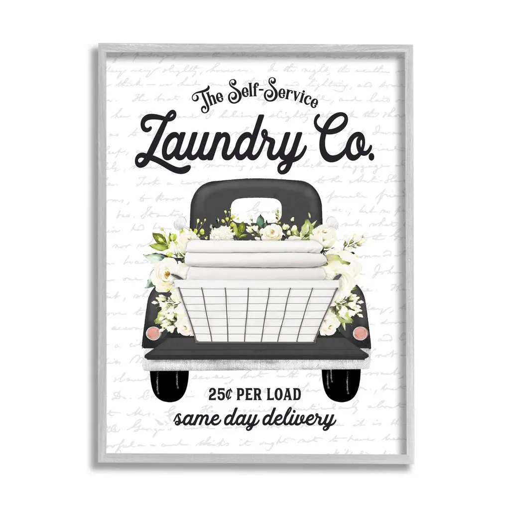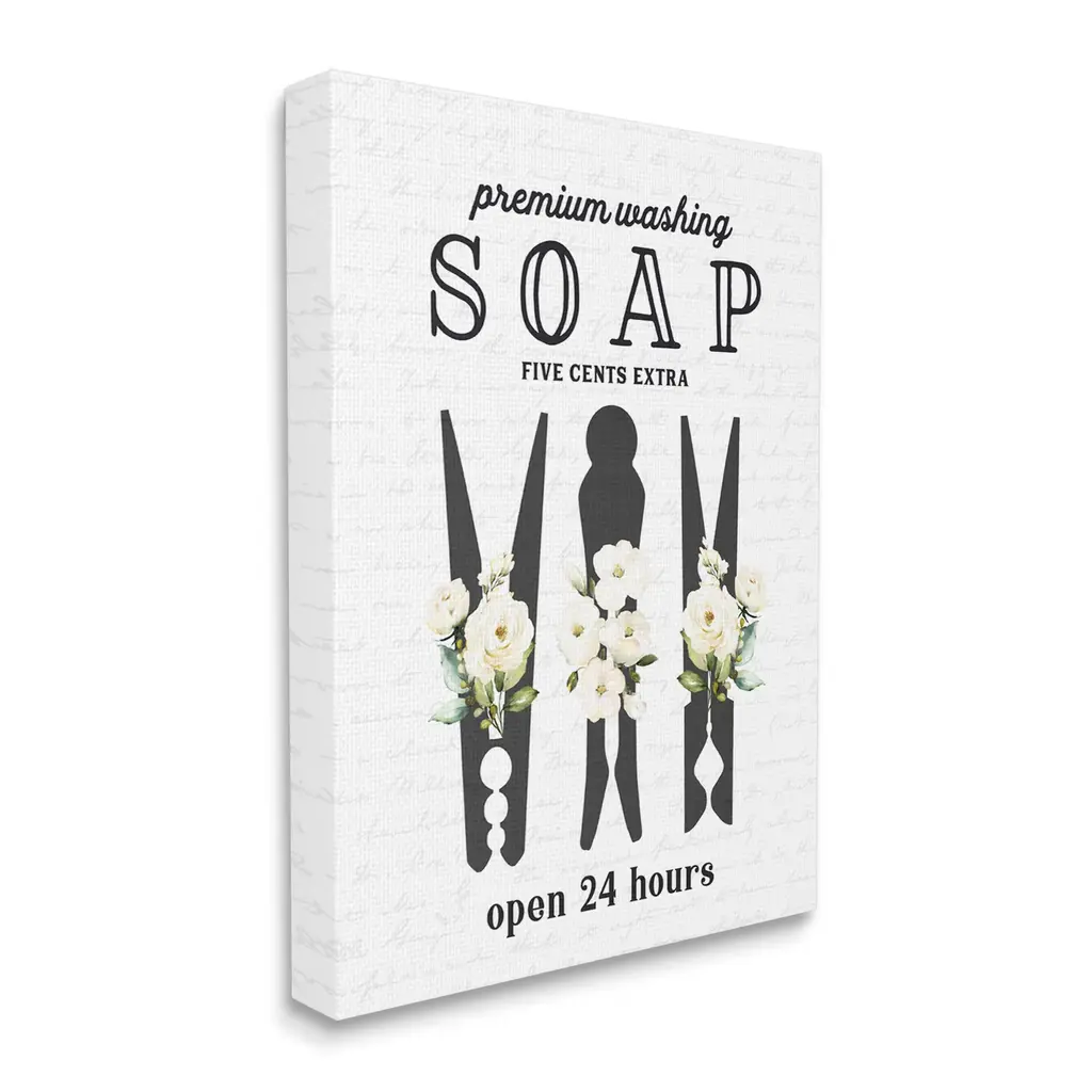 Stupell Floral Clothespin Silhouettes Laundry Room Script Sign Canvas Wall Art, Design By Lettered And Lined - 24 X 30