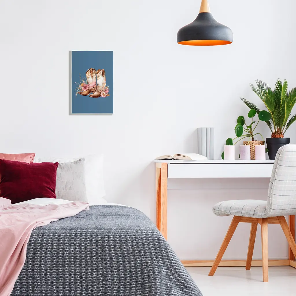 Stupell Floral Cowgirl Boots On Blue Wall Plaque Art Design By Birch&ink - 10 X 15