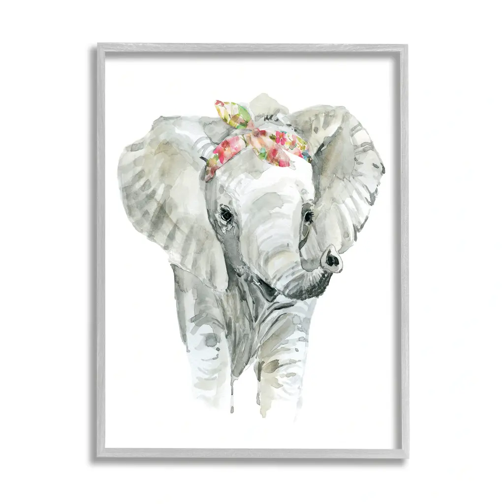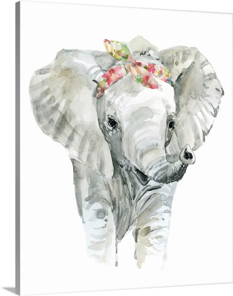 Stupell Floral Crown Baby Elephant Soft Pink Grey Illustration Canvas Wall Art - 24 X 30