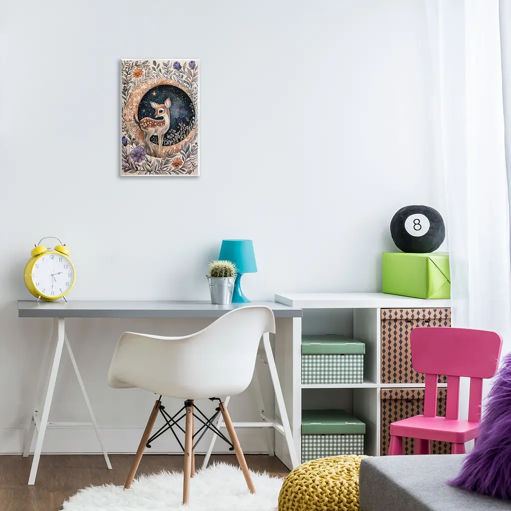 Stupell Floral Fawn & Moon Wall Plaque Art Design By The Dutch Lady - 13 X 19