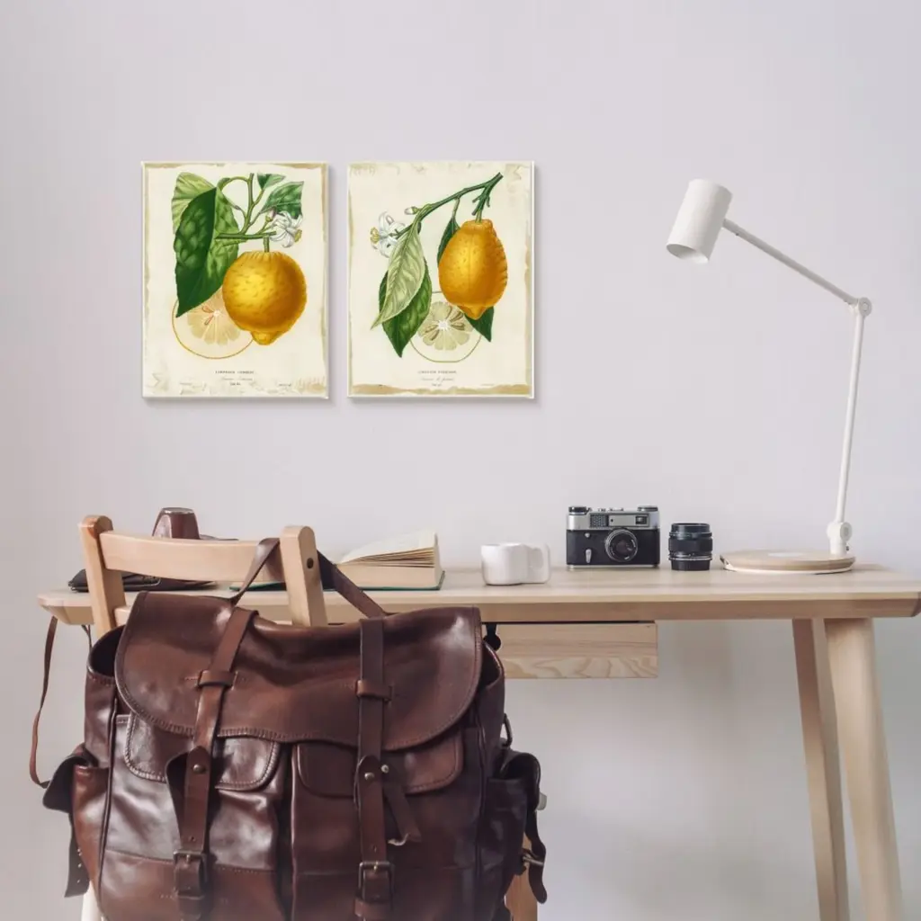 Stupell Floral Lemon Branch With French Script, 2Pc Multi Piece Framed Wall Art Set - 11 X 14 - Silver