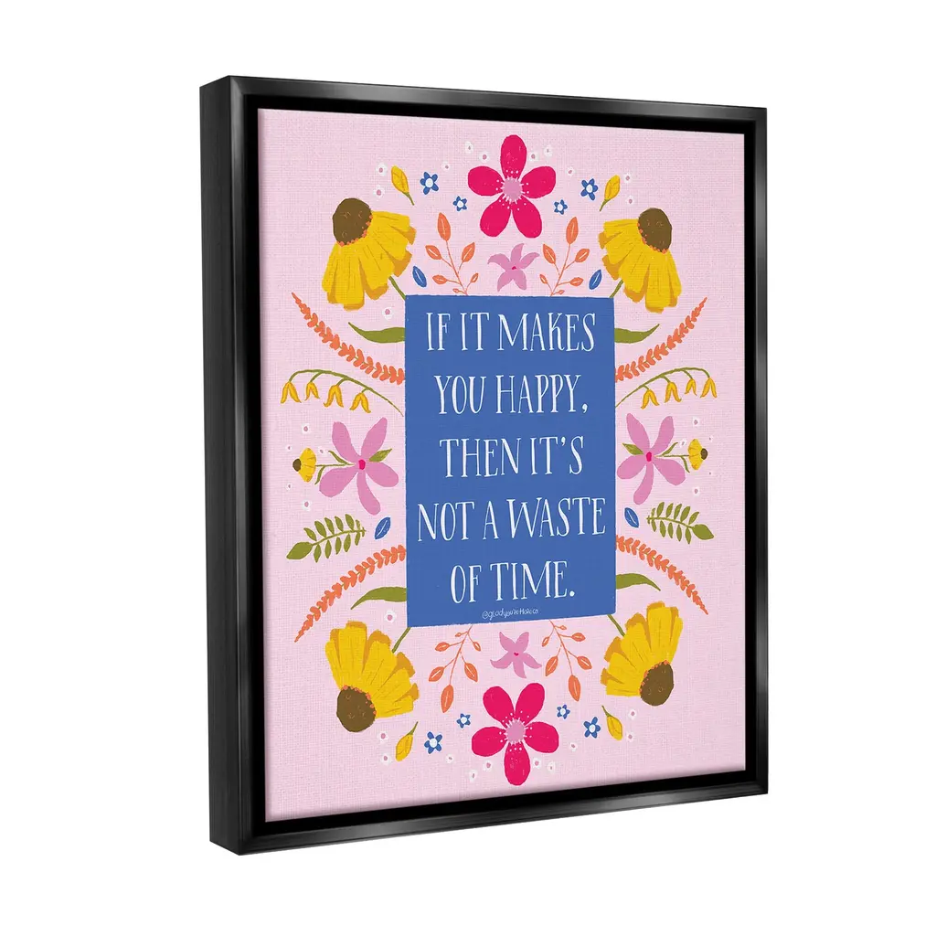 Elevate your home or office to the next level with Stupell Framed Floating Canvas Wall Art. Our premium hand-stretched canvas is mounted securely into a sturdy lightweight frame. The museum-style gap between the wrapped canvas and the box frame gives the illusion of floating artwork. Stupell Wall Art is made in the USA.Features: Dimensions: 17 x 1.7 x 21 Frame, 16 x 1.5 x 20 Canvas ArtFloating Frame Canvas Products are available in sizes 17"x21" and 25"x31". All Floating Frame Canvas Products have a 1.7" Depth.Wall Art is Ready to Hang with Hardware Free Hanging. No Installation required. For Easy Set Up Lean or Layer Artwork on Shelf or Against Wall. Artwork is Permently Fixed into the Frame.Our elevated 1.7" Thick Floating Frame is the perfect complement to our canvas style Wall Art. We use only the highest quality inks in house with industry leading printing solutions. Canvas is hand stretched over a durable wood foundation and then mounted securly into a Modern Box Frame. Made in the USA.Artwork Relates To: Floral, Flower, Pattern, Botanical, Plant, Inspirational, If It Makes You Happy Then It's Not a Waste of TimeDesign by Glad You're Here Co.