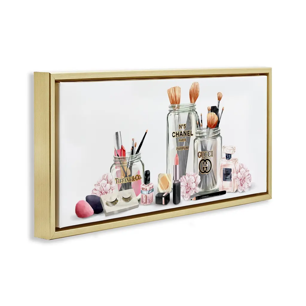 Elevate your home or office to the next level with Stupell Framed Floating Canvas Wall Art. Our premium hand-stretched canvas is mounted securely into a sturdy lightweight frame. The museum-style gap between the wrapped canvas and the box frame gives the illusion of floating artwork. Stupell Wall Art is made in the USA.Features: Dimensions: 25 x 1.7 x 11 Frame, 24 x 1.5 x 10 Canvas ArtFloating Frame Canvas Products are available in sizes 25"x11" and 31"x14". All Floating Frame Canvas Products have a 1.7" Depth.Wall Art is Ready to Hang with Hardware Free Hanging. No Installation required. For Easy Set Up Lean or Layer Artwork on Shelf or Against Wall. Artwork is Permently Fixed into the Frame.Our elevated 1.7" Thick Floating Frame is the perfect complement to our canvas style Wall Art. We use only the highest quality inks in house with industry leading printing solutions. Canvas is hand stretched over a durable wood foundation and then mounted securly into a Modern Box Frame. Made in the USA.Artwork Relates To: Glam, Fashion, Makeup, Beauty, Floral, Cherry Blossom, Flower, CosmeticsDesign by Ziwei Li