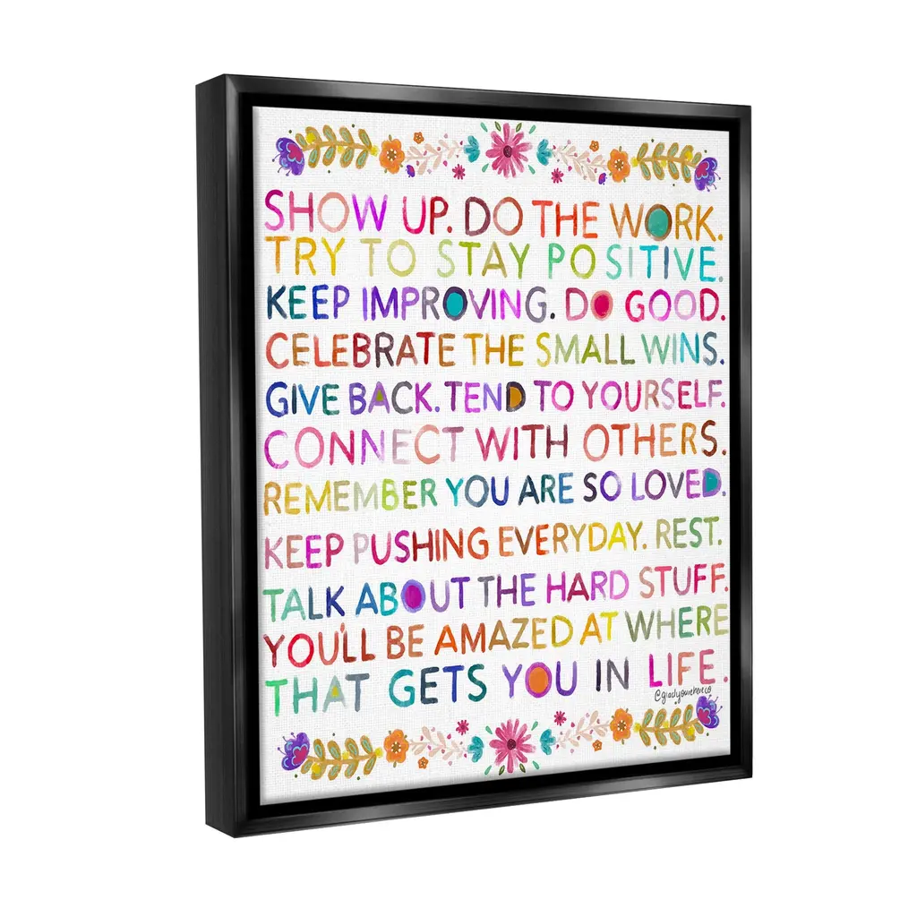 Stupell Floral Motivational Phrases Framed Floater Canvas Wall Art Design By Glad You're Here Co. - 17 X 21 - Black