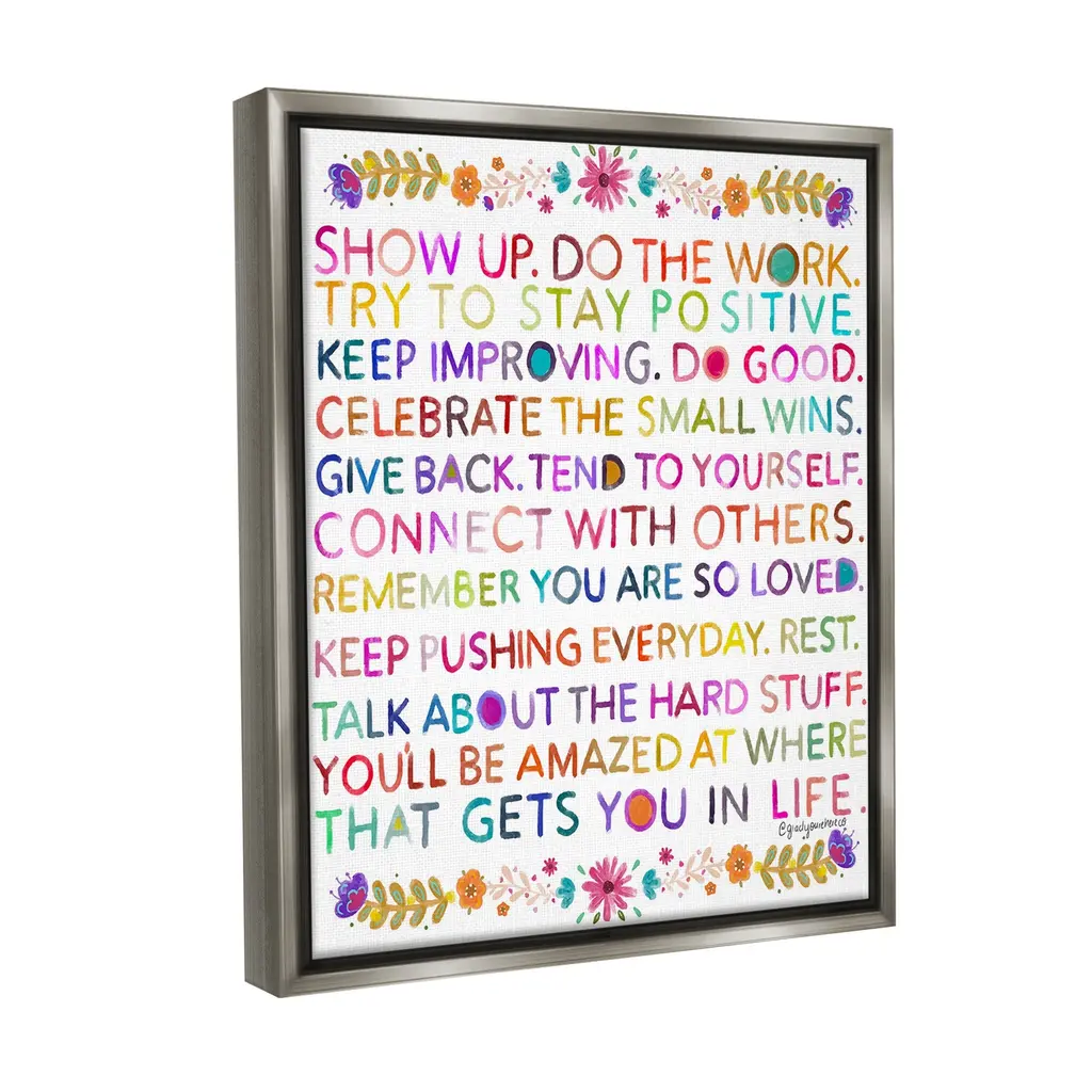 Elevate your home or office to the next level with Stupell Framed Floating Canvas Wall Art. Our premium hand-stretched canvas is mounted securely into a sturdy lightweight frame. The museum-style gap between the wrapped canvas and the box frame gives the illusion of floating artwork. Stupell Wall Art is made in the USA.Features: Dimensions: 17 x 1.7 x 21 Frame, 16 x 1.5 x 20 Canvas ArtFloating Frame Canvas Products are available in sizes 17"x21" and 25"x31". All Floating Frame Canvas Products have a 1.7" Depth.Wall Art is Ready to Hang with Hardware Free Hanging. No Installation required. For Easy Set Up Lean or Layer Artwork on Shelf or Against Wall. Artwork is Permently Fixed into the Frame.Our elevated 1.7" Thick Floating Frame is the perfect complement to our canvas style Wall Art. We use only the highest quality inks in house with industry leading printing solutions. Canvas is hand stretched over a durable wood foundation and then mounted securly into a Modern Box Frame. Made in the USA.Artwork Relates To: Floral, Flower, Pattern, Botanical, Plant, Inspirational, MotivationalDesign by Glad You're Here Co.