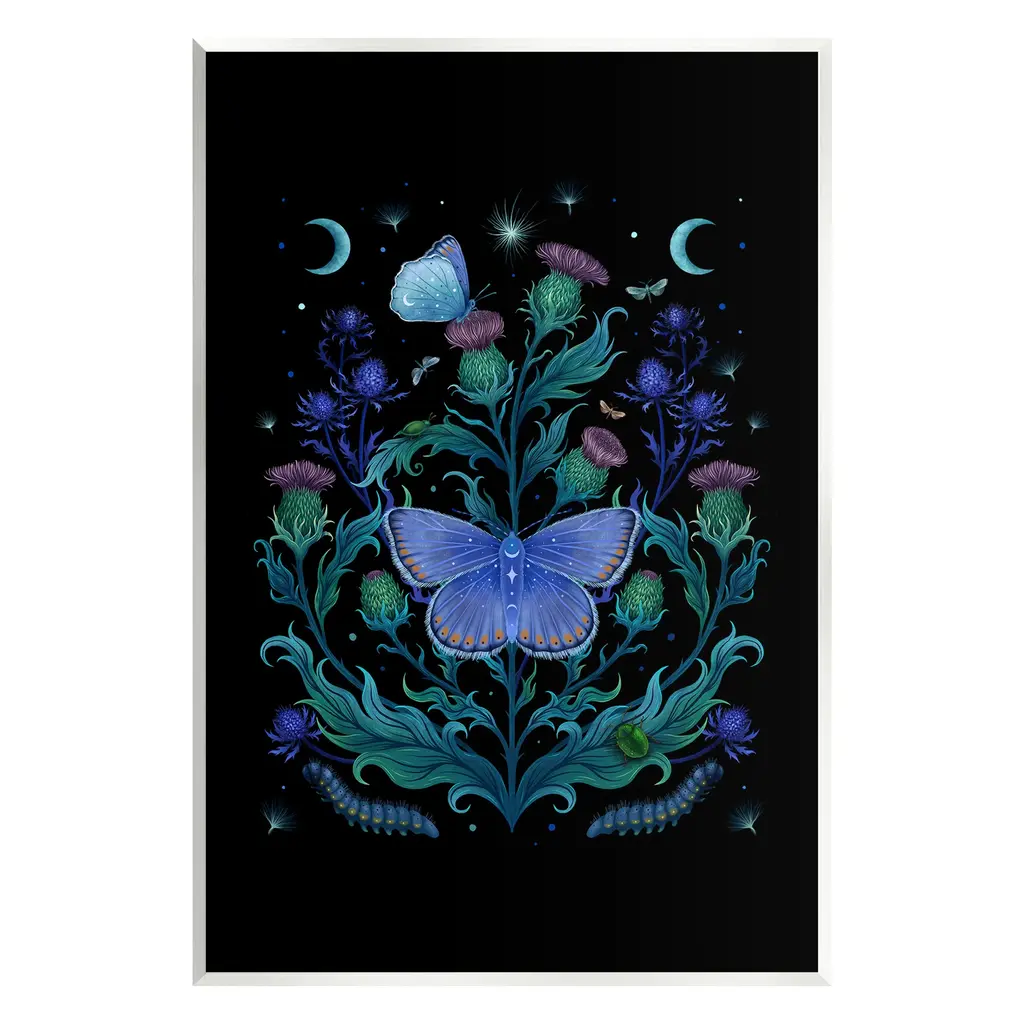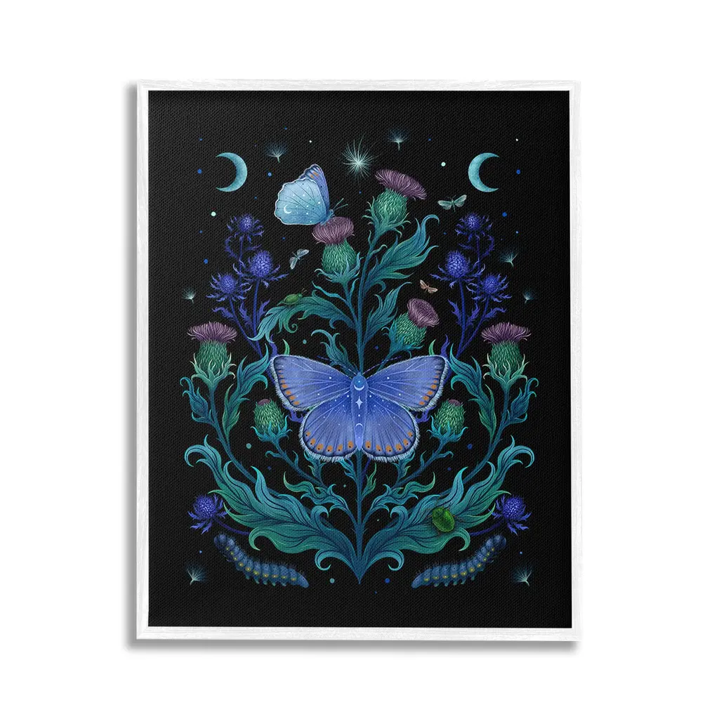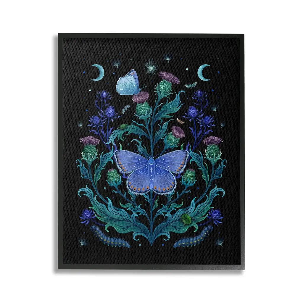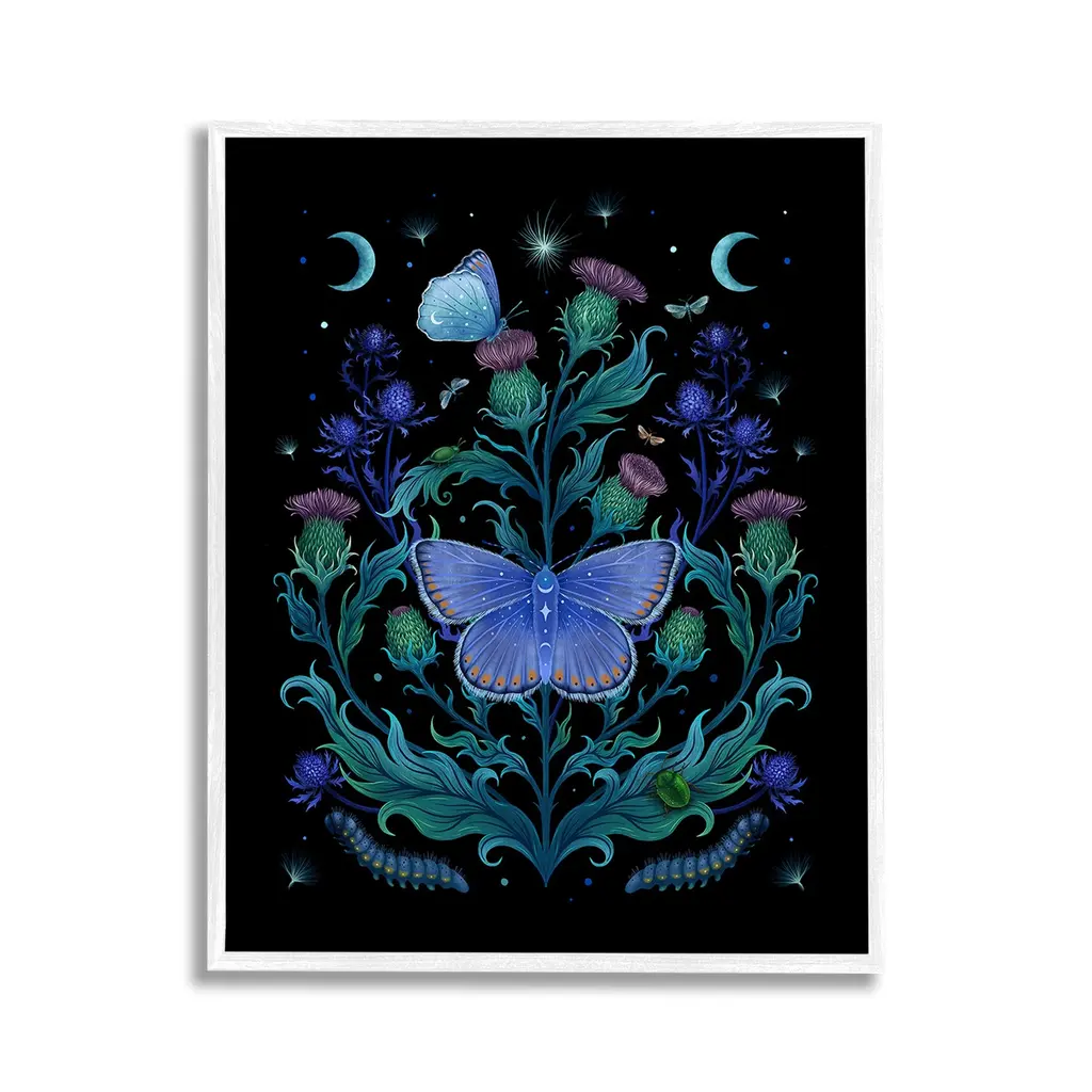 Add dimension to any room with our textured Framed Giclee Artwork. Our framed artwork is securely mounted into a 1.5-inch thick wood grain frame and ready to hang. Frames are available in three alluring styles: black, gray farmhouse and white. In addition, you should check out our oversized options if you want a statement piece. Stupell Wall Art is made in the USA.Features: Dimensions: 11 x 1.5 x 14 FramedFramed Giclee Products are available in the sizes 11"x14", 16"x20" or 24"x30". All Framed Giclee Products have a 1.5" Depth. Wall Art is Ready to Hang with Hardware Free Hanging. No installation required. For Easy Set Up Lean or Layer Artwork on Shelf or Against Wall.Our giclée prints are carefully mounted on a durable MDF backing, and then perfectly finished in a 1.5 inch thick woodgrain frame. Mounted frame colors include black, gray farmhouse and white. Made In USA.Artwork Relates To: Plant, Animal, Butterfly, Insect, Invertebrate, Astronomy, Moon, Nature, Night, Moth, Pattern, Astral, Celestial, Flower, FloralDesign by Episodic Drawings