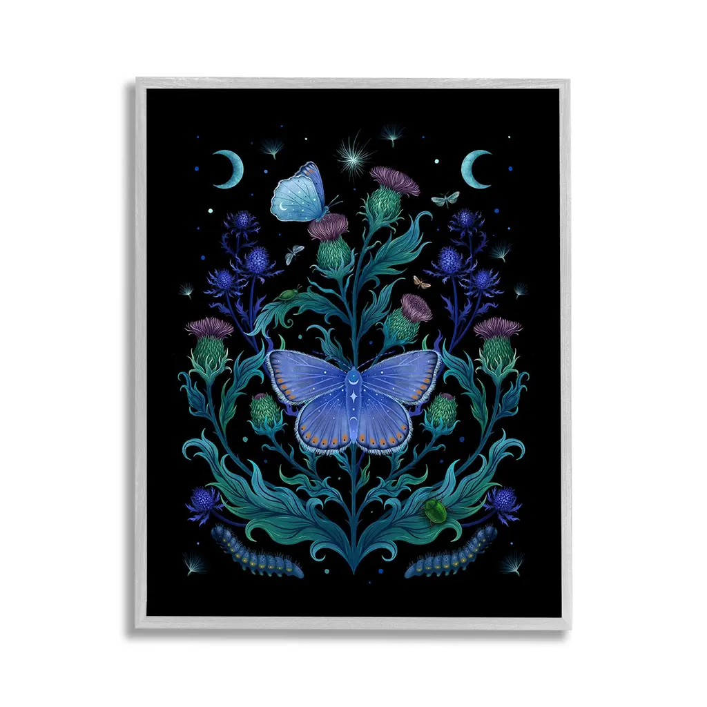 Stupell Floral Night Sky Butterfly Wall Plaque Art Design By Episodic Drawings - 13 X 19