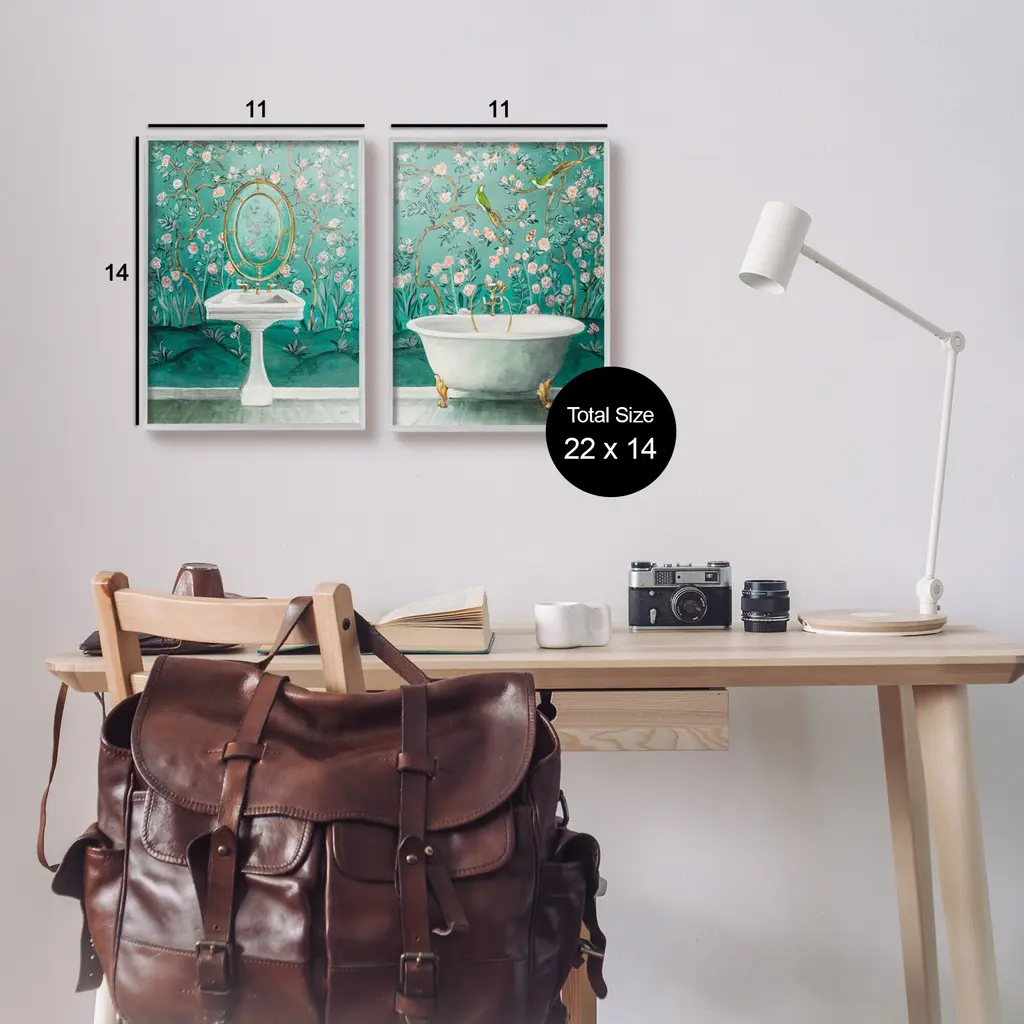Fill any space in your home or office with our Framed Wall Art Sets. Our framed artwork is securely mounted into a 1.5-inch thick wood grain frame and ready to hang. Frames are available in three alluring styles: black, gray farmhouse and white. Stupell Wall Art is made in the USA.Features: Dimensions: 2 Piece Set, Each Panel is 11 x 1.5 x 14 FramedFramed Giclee Set Sizes Include Standard: 2pc, Each is 11 x 1.5 x 14 Large: 2pc, Each is 16 x 1.5 x 20 Oversized: 2pc, Each is 24 x 1.5 x 30Wall Art is Ready to Hang with Hardware Free Hanging. No installation required. For Easy Set Up Lean or Layer Artwork on Shelf or Against Wall.Curated Wall Art Sets make it easy for you complete the theme for any room. Our giclée prints are carefully mounted on a durable MDF backing, and then perfectly finished in a 1.5 inch thick woodgrain frame. Mounted frame colors include black, gray farmhouse and white. Made In USA.Artwork Relates To: Bathing, Bathtub, Tub, Sink, Sink Faucet, Painting, Bathroom, Turquoise, BirdDesign by Julia Purinton