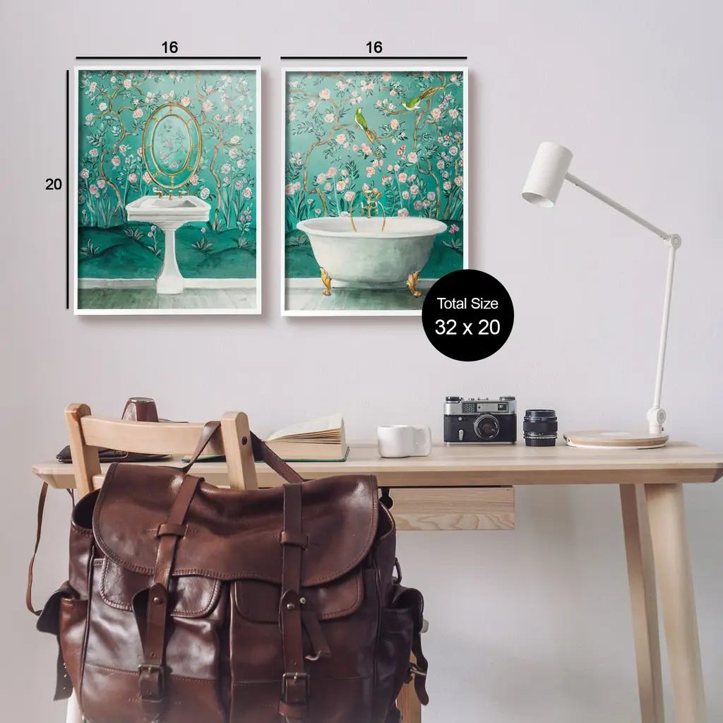 Fill any space in your home or office with our Framed Wall Art Sets. Our framed artwork is securely mounted into a 1.5-inch thick wood grain frame and ready to hang. Frames are available in three alluring styles: black, gray farmhouse and white. Stupell Wall Art is made in the USA.Features: Dimensions: 2 Piece Set, Each Panel is 11 x 1.5 x 14 FramedFramed Giclee Set Sizes Include Standard: 2pc, Each is 11 x 1.5 x 14 Large: 2pc, Each is 16 x 1.5 x 20 Oversized: 2pc, Each is 24 x 1.5 x 30Wall Art is Ready to Hang with Hardware Free Hanging. No installation required. For Easy Set Up Lean or Layer Artwork on Shelf or Against Wall.Curated Wall Art Sets make it easy for you complete the theme for any room. Our giclée prints are carefully mounted on a durable MDF backing, and then perfectly finished in a 1.5 inch thick woodgrain frame. Mounted frame colors include black, gray farmhouse and white. Made In USA.Artwork Relates To: Bathing, Bathtub, Tub, Sink, Sink Faucet, Painting, Bathroom, Turquoise, BirdDesign by Julia Purinton