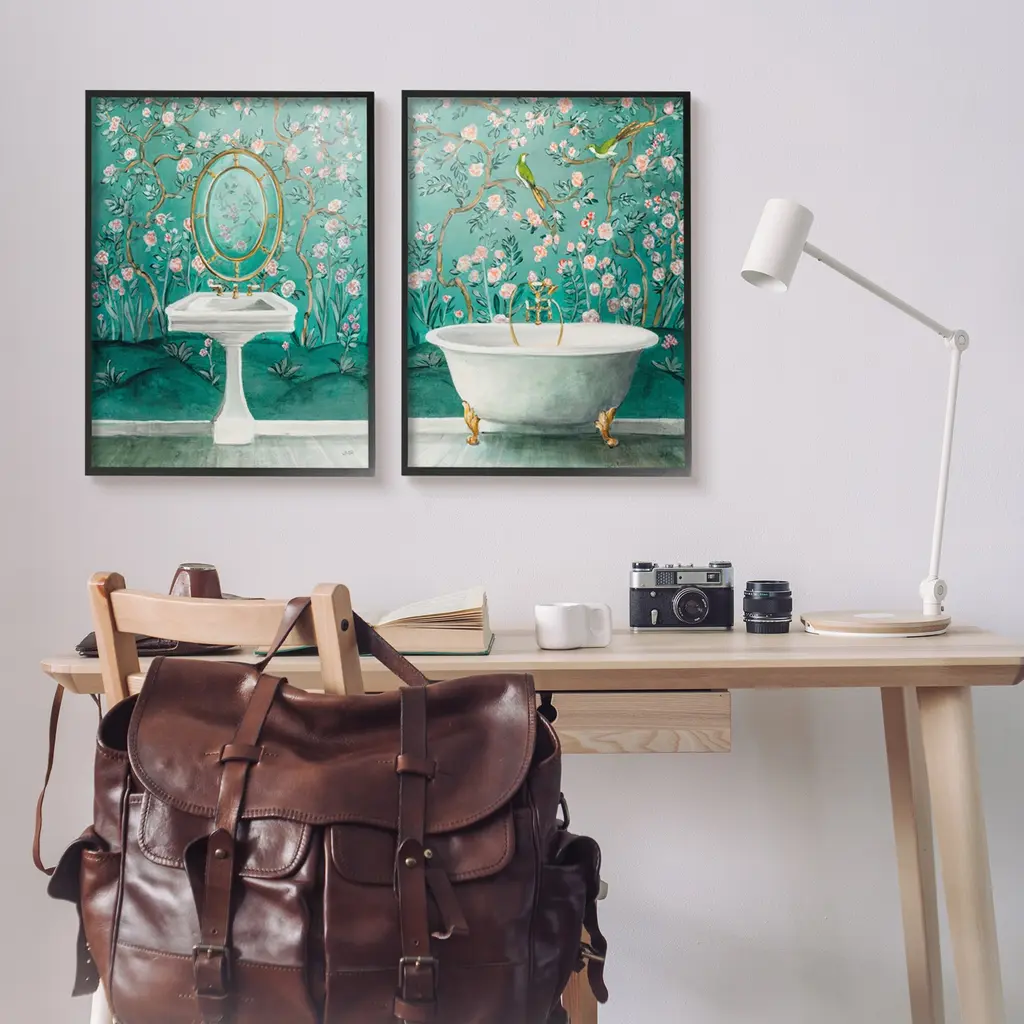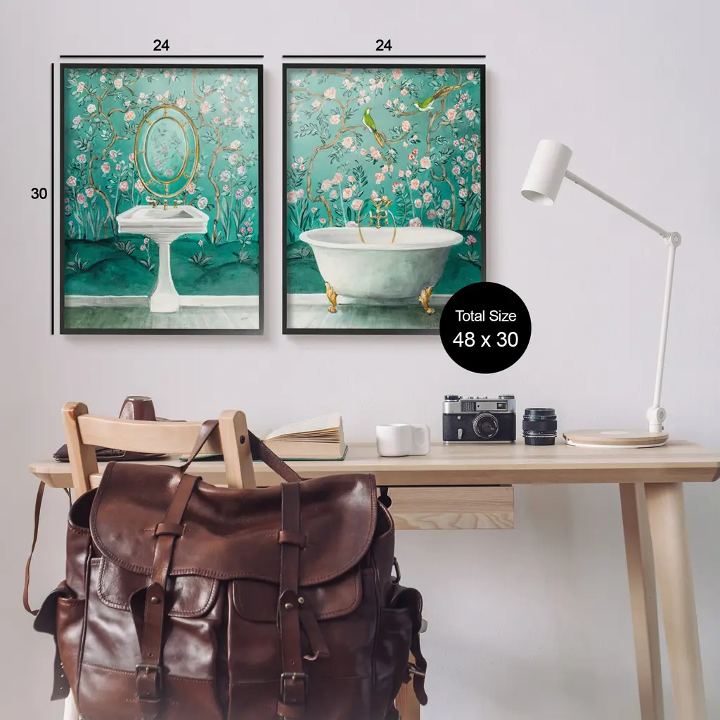 Fill any space in your home or office with our Framed Wall Art Sets. Our framed artwork is securely mounted into a 1.5-inch thick wood grain frame and ready to hang. Frames are available in three alluring styles: black, gray farmhouse and white. Stupell Wall Art is made in the USA.Features: Dimensions: 2 Piece Set, Each Panel is 11 x 1.5 x 14 FramedFramed Giclee Set Sizes Include Standard: 2pc, Each is 11 x 1.5 x 14 Large: 2pc, Each is 16 x 1.5 x 20 Oversized: 2pc, Each is 24 x 1.5 x 30Wall Art is Ready to Hang with Hardware Free Hanging. No installation required. For Easy Set Up Lean or Layer Artwork on Shelf or Against Wall.Curated Wall Art Sets make it easy for you complete the theme for any room. Our giclée prints are carefully mounted on a durable MDF backing, and then perfectly finished in a 1.5 inch thick woodgrain frame. Mounted frame colors include black, gray farmhouse and white. Made In USA.Artwork Relates To: Bathing, Bathtub, Tub, Sink, Sink Faucet, Painting, Bathroom, Turquoise, BirdDesign by Julia Purinton