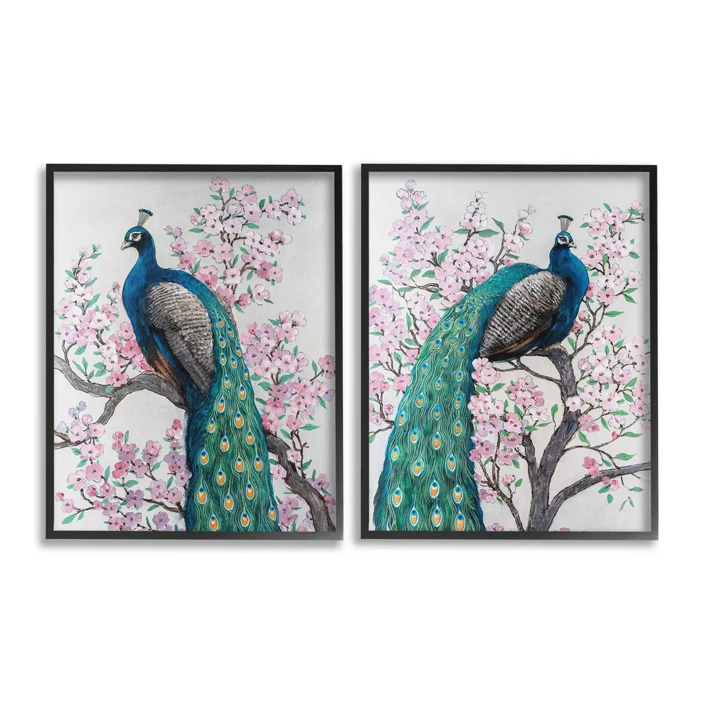 Elevate your home or office to the next level with Stupell Framed Floating Canvas Wall Art. Our premium hand-stretched canvas is mounted securely into a sturdy lightweight frame. The museum-style gap between the wrapped canvas and the box frame gives the illusion of floating artwork. Stupell Wall Art is made in the USA.Features: Dimensions: 2 Piece Set, Each Frame is 17 x 1.7 x 21Two Piece Floater Framed Canvas are available as 17x21 or 25x31 Panels. All Floater Frame Products have a 1.7" Depth.Wall Art is Ready to Hang with Hardware Free Hanging. No Installation required. For Easy Set Up Lean or Layer Artwork on Shelf or Against Wall. Artwork is Permently Fixed into the Frame.Our elevated 1.7" Thick Floating Frame is the perfect complement to our canvas style Wall Art. We use only the highest quality inks in house with industry leading printing solutions. Canvas is hand stretched over a durable wood foundation and then mounted securly into a Modern Box Frame. Made in the USA.Artwork Relates To: Animal, Bird, Peacock, Flower, Plant, Beak, Botanical, Cherry Blossom, Pattern, Floral, NatureDesign by Tim OToole