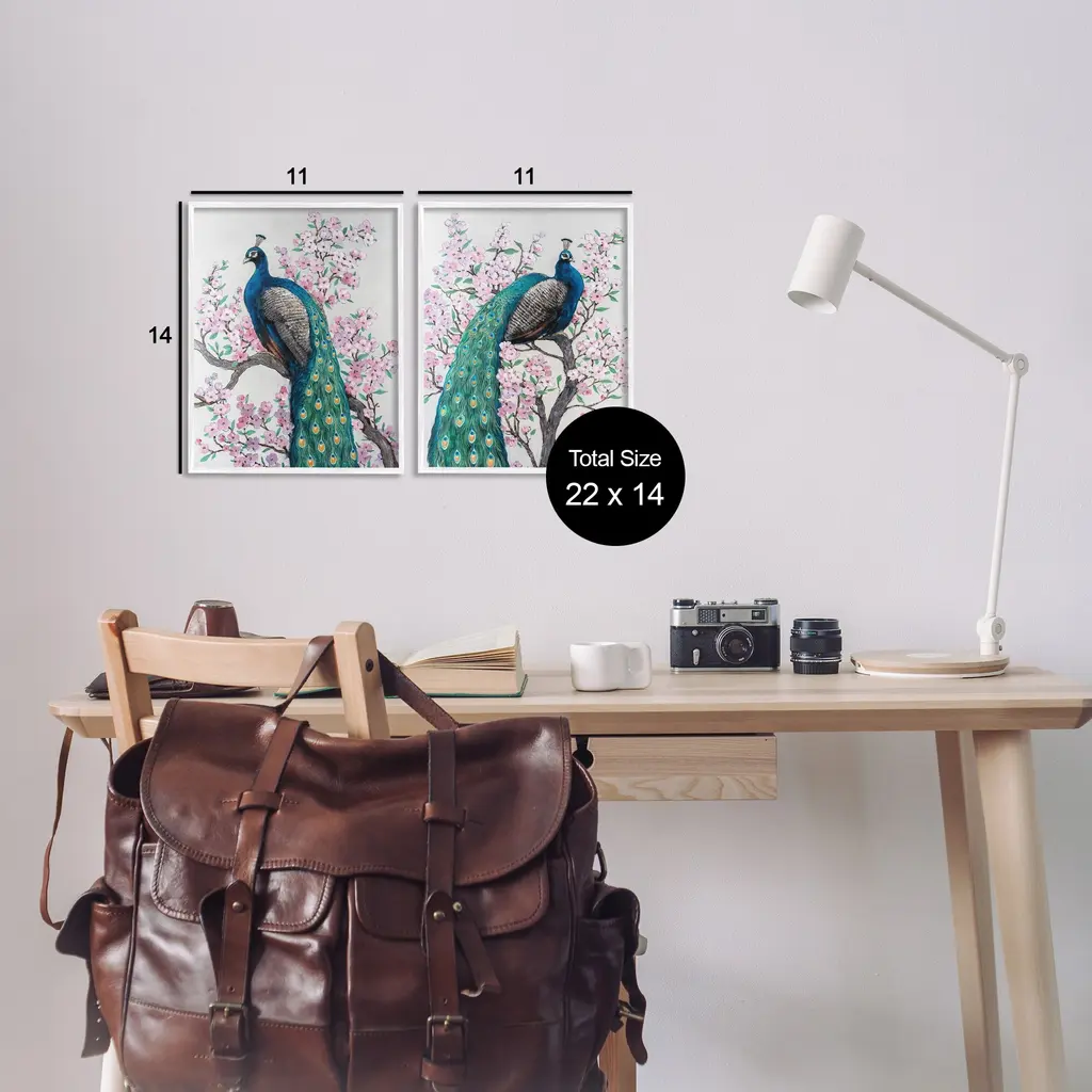 Fill any space in your home or office with our Framed Wall Art Sets. Our framed artwork is securely mounted into a 1.5-inch thick wood grain frame and ready to hang. Frames are available in three alluring styles: black, gray farmhouse and white. Stupell Wall Art is made in the USA.Features: Dimensions: 2 Piece Set, Each Panel is 11 x 1.5 x 14 FramedTwo Piece Framed Giclee Sets are available as 11"x14", 16"x20" or 24"x30" Panels. All Framed Giclee Products have a 1.5" Depth.Wall Art is Ready to Hang with Hardware Free Hanging. No installation required. For Easy Set Up Lean or Layer Artwork on Shelf or Against Wall.Curated Wall Art Sets make it easy for you complete the theme for any room. Our giclée prints are carefully mounted on a durable MDF backing, and then perfectly finished in a 1.5 inch thick woodgrain frame. Mounted frame colors include black, gray farmhouse and white. Made In USA.Artwork Relates To: Animal, Bird, Peacock, Flower, Plant, Beak, Botanical, Cherry Blossom, Pattern, Floral, NatureDesign by Tim OToole