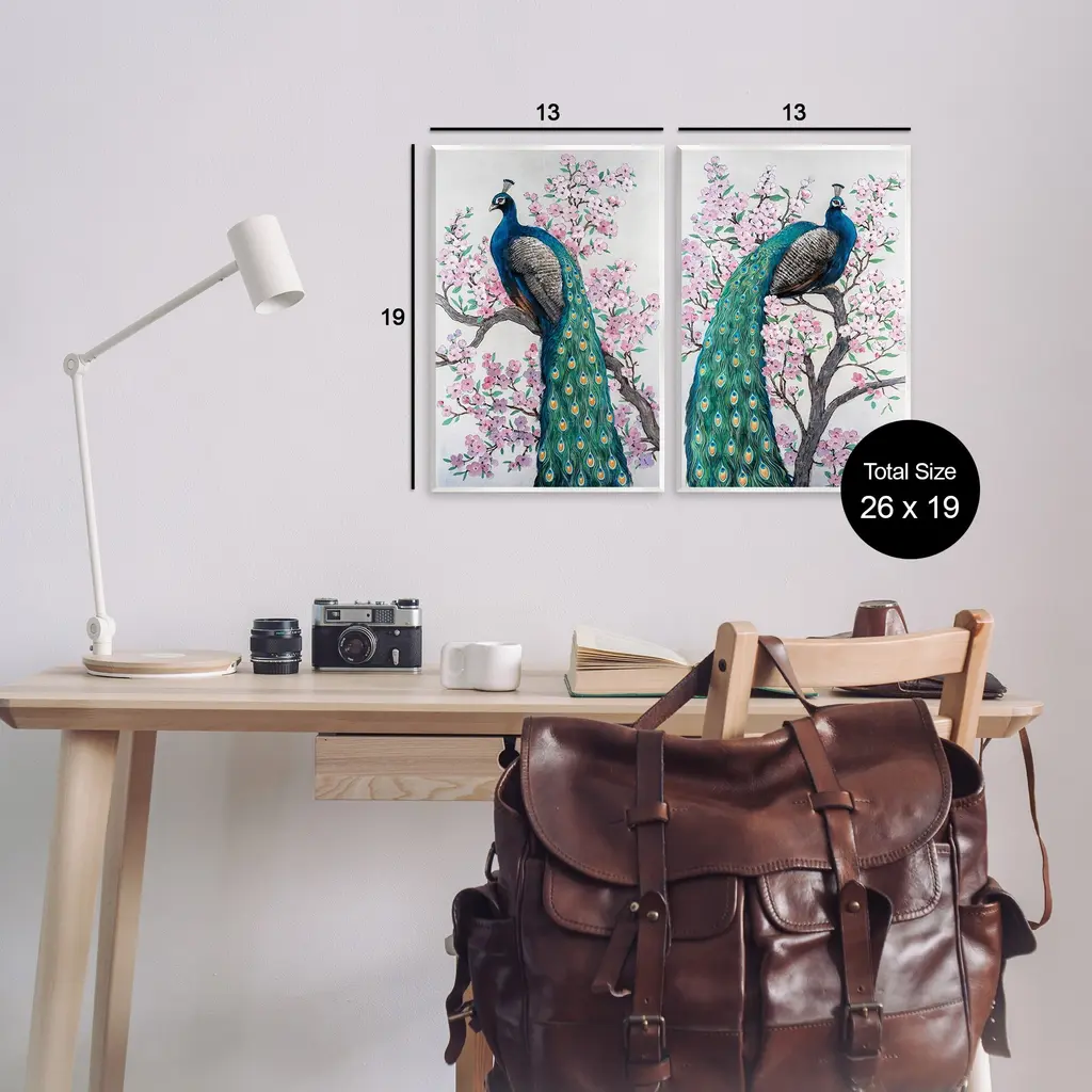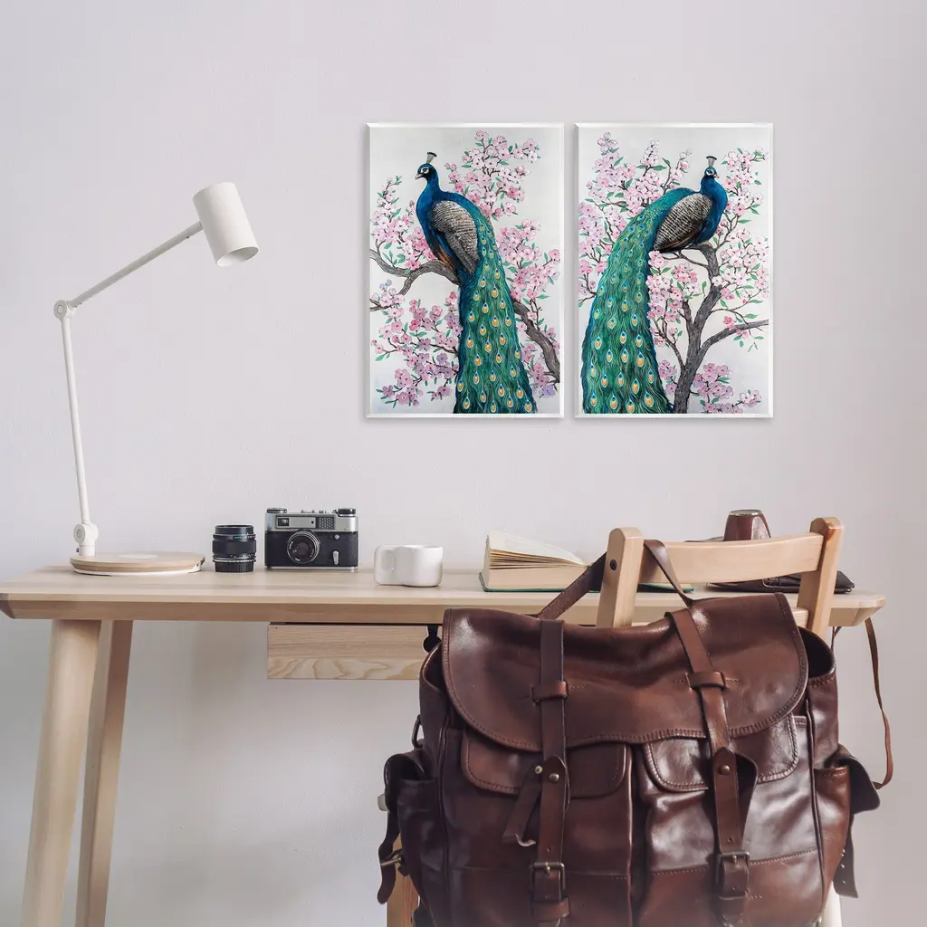 Fill any space with Stupell Wall Art Sets. Our wall plaques start as high-quality lithograph prints mounted on durable 0.5-inch thick MDF wood. Each piece is hand finished and comes with a fresh layer of white foil on the sides to give it a crisp, clean look. Plaques arrive ready to hang without installation and come with removable plastic corners to keep them from damage in transit. Stupell Wall Art is made in the USA.Features: Dimensions: 2 Piece Set, Each Panel is 10 x 0.5 x 15 InchesTwo Piece Wall Plaque Sets are available as 10"x15" or 13"x19" Panels. All Wall Art Plaques have a 0.5" Depth.Wall Art is Ready to Hang with Hardware Free Hanging. No installation required. For Easy Set Up Lean or Layer Artwork on Shelf or Against Wall.All of our wall plaques start off as high quality lithograph prints that are then mounted on durable 0.5 inch thick MDF wood. Each piece is hand finished and comes with a fresh layer of foil on the sides to give it a crisp clean look. Made In USA.Artwork Relates To: Animal, Bird, Peacock, Flower, Plant, Beak, Botanical, Cherry Blossom, Pattern, Floral, NatureDesign by Tim OToole