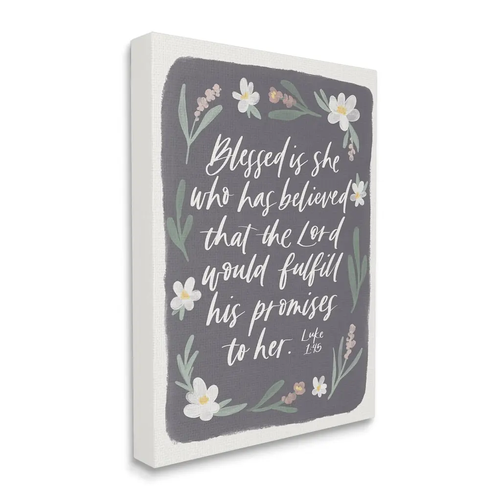 Proudly made in the USA, Our stretched canvas is created with the highest standards. We use only the highest quality inks and canvas on our in house Mimaki printers, and then hand cut and stretch each piece over a 1.5 inch thick wooden frame for hanging. The art comes ready to hang with no installation required.Features: Wall Art is Ready to Hang - No Installation or Hardware Needed. For Easy Set Up Lean or Layer Artwork on Shelf or Against Wall.Our stretched canvas is created with the highest standards. We use only the highest quality inks and canvas on our in house Mimaki printers, and then hand cut and stretch each piece over a 1.5 inch thick wooden frame for hanging. Made In USA.Artwork Relates To: Religious; Bible Verse; Flowers; Floral; BotanicalDesign by Amanda Houston