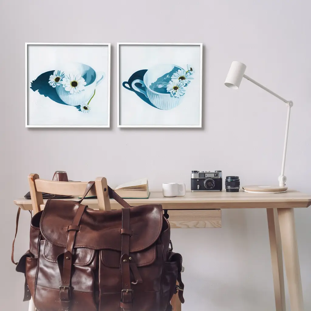 Fill any space in your home or office with our Framed Wall Art Sets. Our framed artwork is securely mounted into a 1.5-inch thick wood grain frame and ready to hang. Frames are available in three alluring styles: black, gray farmhouse and white. Stupell Wall Art is made in the USA.Features: Dimensions: 2 Piece Set, Each Panel is 12 x 1.5 x 12 FramedFramed Giclee Set Sizes Include Standard: 2pc, Each is 12 x 1.5 x 12 Large: 2pc, Each is 17 x 1.5 x 17 Oversized: 2pc, Each is 24 x 1.5 x 24Wall Art is Ready to Hang with Hardware Free Hanging. No installation required. For Easy Set Up Lean or Layer Artwork on Shelf or Against Wall.Curated Wall Art Sets make it easy for you complete the theme for any room. Our giclée prints are carefully mounted on a durable MDF backing, and then perfectly finished in a 1.5 inch thick woodgrain frame. Mounted frame colors include black, gray farmhouse and white. Made In USA.Artwork Relates To: Daisy, Flower, Plant, Painting, Beverage, Coffee Cup, FloralDesign by Grace Popp