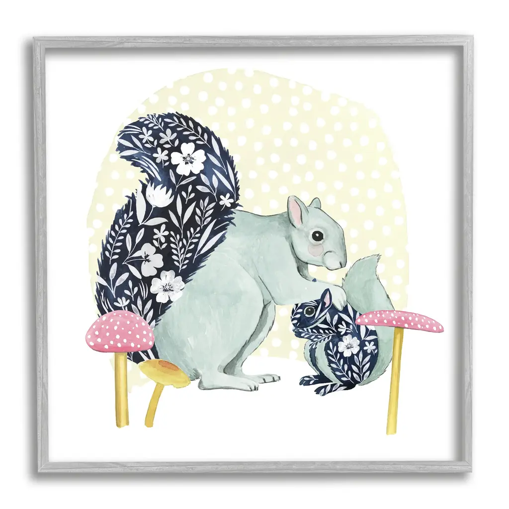 Add dimension to any room with our textured Framed Giclee Artwork. Our framed artwork is securely mounted into a 1.5-inch thick wood grain frame and ready to hang. Frames are available in three alluring styles: black, gray farmhouse and white. In addition, you should check out our oversized options if you want a statement piece. Stupell Wall Art is made in the USA.Features: Dimensions: 12 x 1.5 x 12 FramedFramed Giclee Sizes Include Standard: 12 x 1.5 x 12 Large: 17 x 1.5 x 17 Oversized: 24 x 1.5 x 24Wall Art is Ready to Hang - No Installation or Hardware Needed. For Easy Set Up Lean or Layer Artwork on Shelf or Against Wall.Our giclée prints are carefully mounted on a durable MDF backing, and then perfectly finished in a 1.5 inch thick woodgrain frame. Mounted frame colors include black, gray farmhouse and white. Made In USA.Artwork Relates To: Fungus, Plant, Animal, Mammal, Agaric, Mushroom, Squirrel, Pattern, Yellow, Polka Dog, FloralDesign by Grace Popp