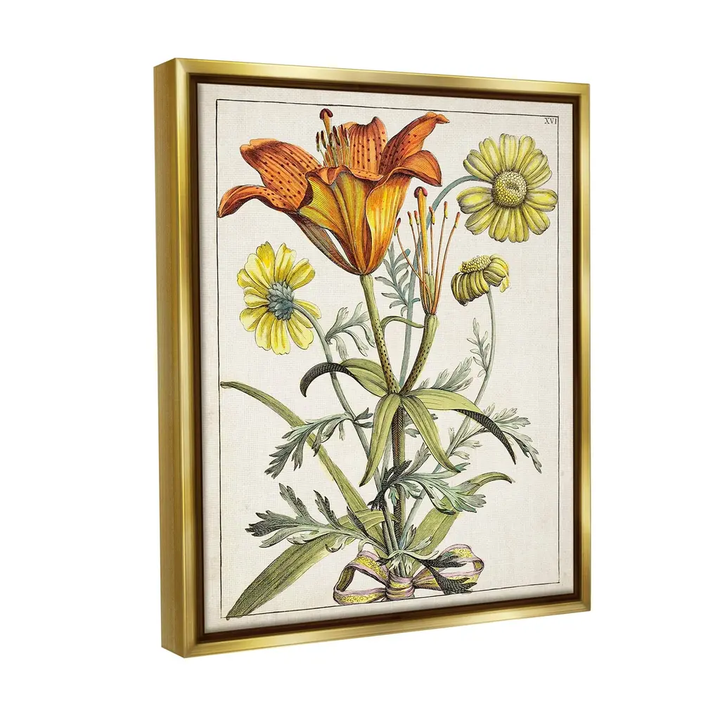 Stupell Flowers Latin Study Framed Floater Canvas Wall Art Design By World Art Group - 17 X 21 - Gold