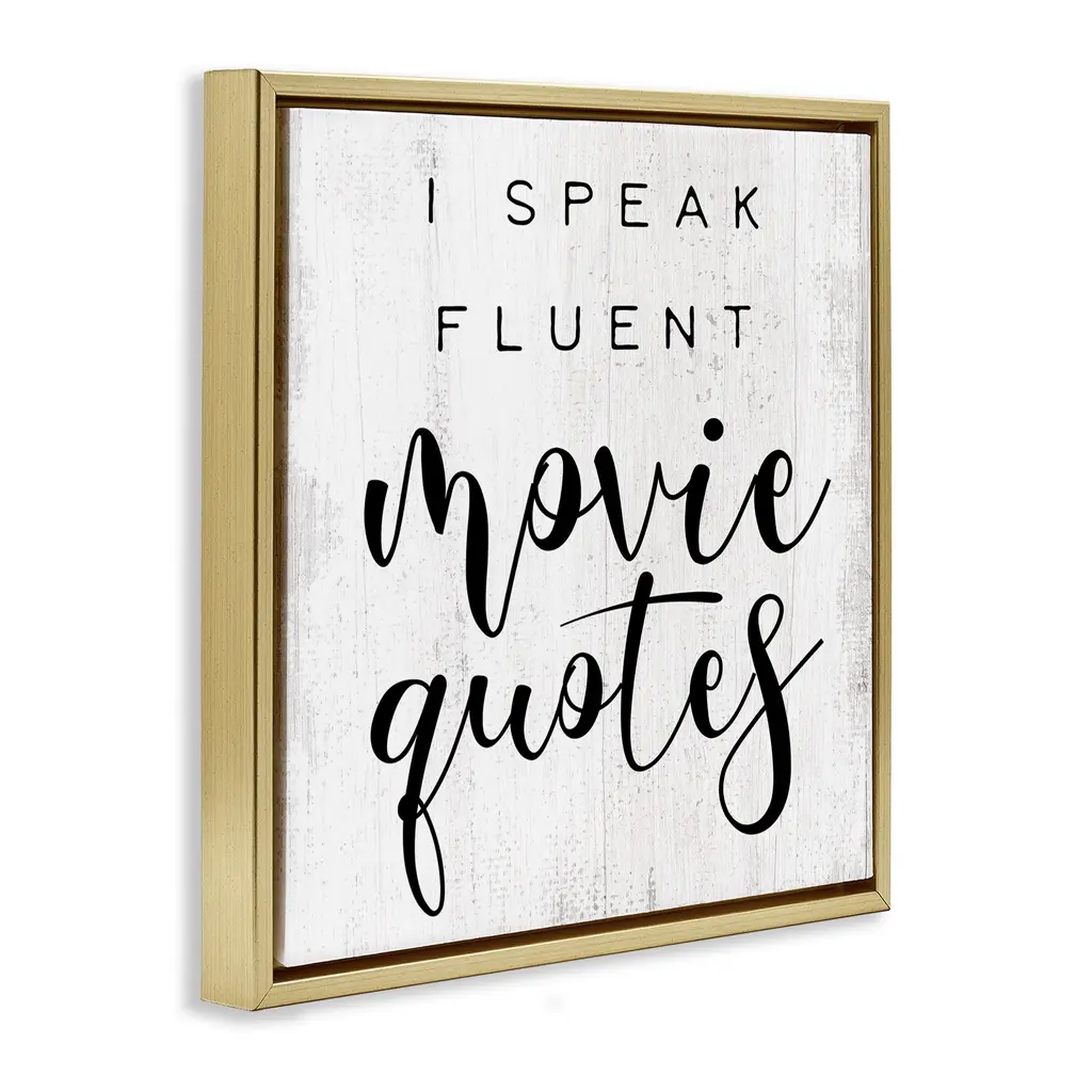 Stupell Fluent Movie Quotes Phrase Framed Floater Canvas Wall Art Design By Daphne Polselli - 18 X 18 - Gold
