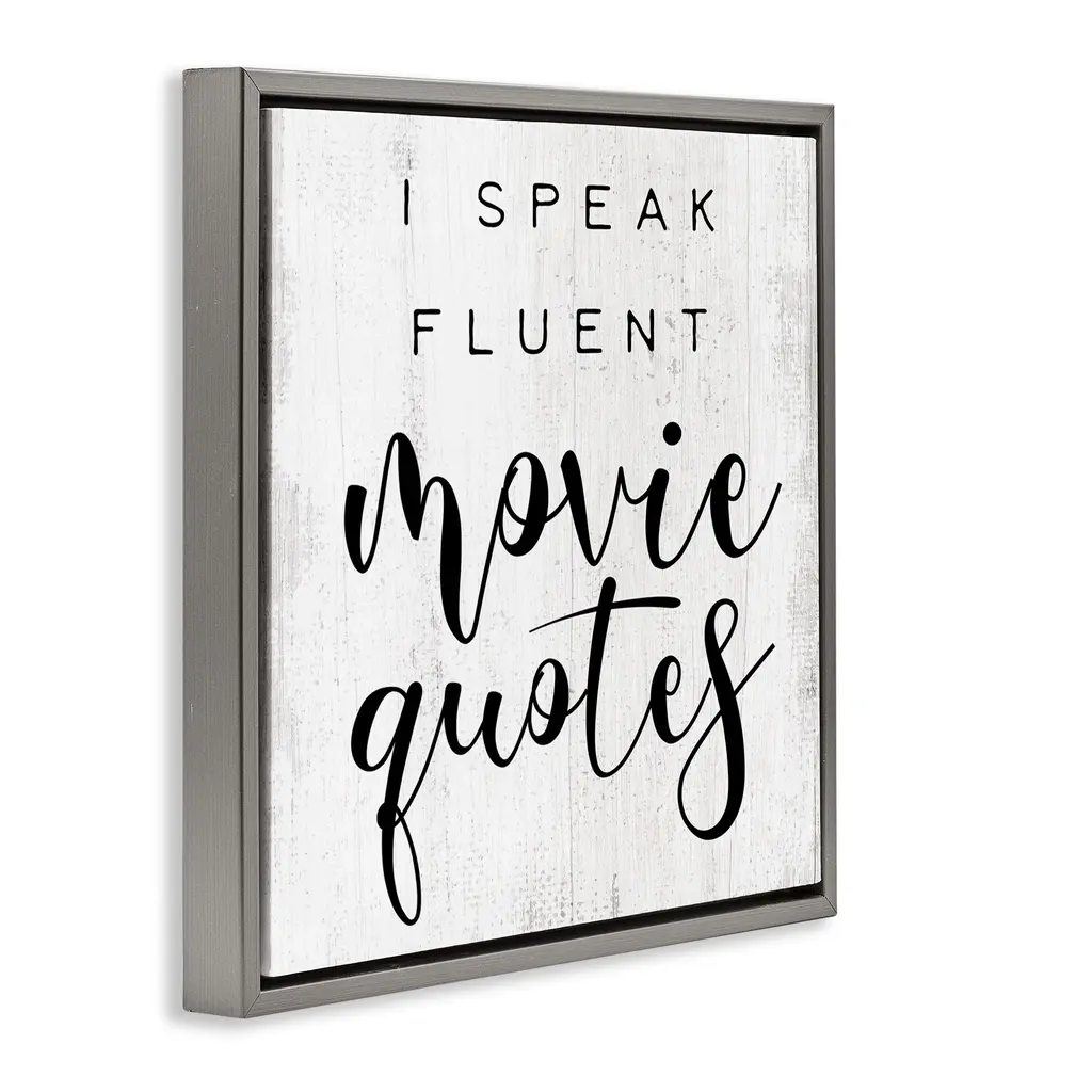 Stupell Fluent Movie Quotes Phrase Framed Floater Canvas Wall Art Design By Daphne Polselli - 25 X 25 - Grey