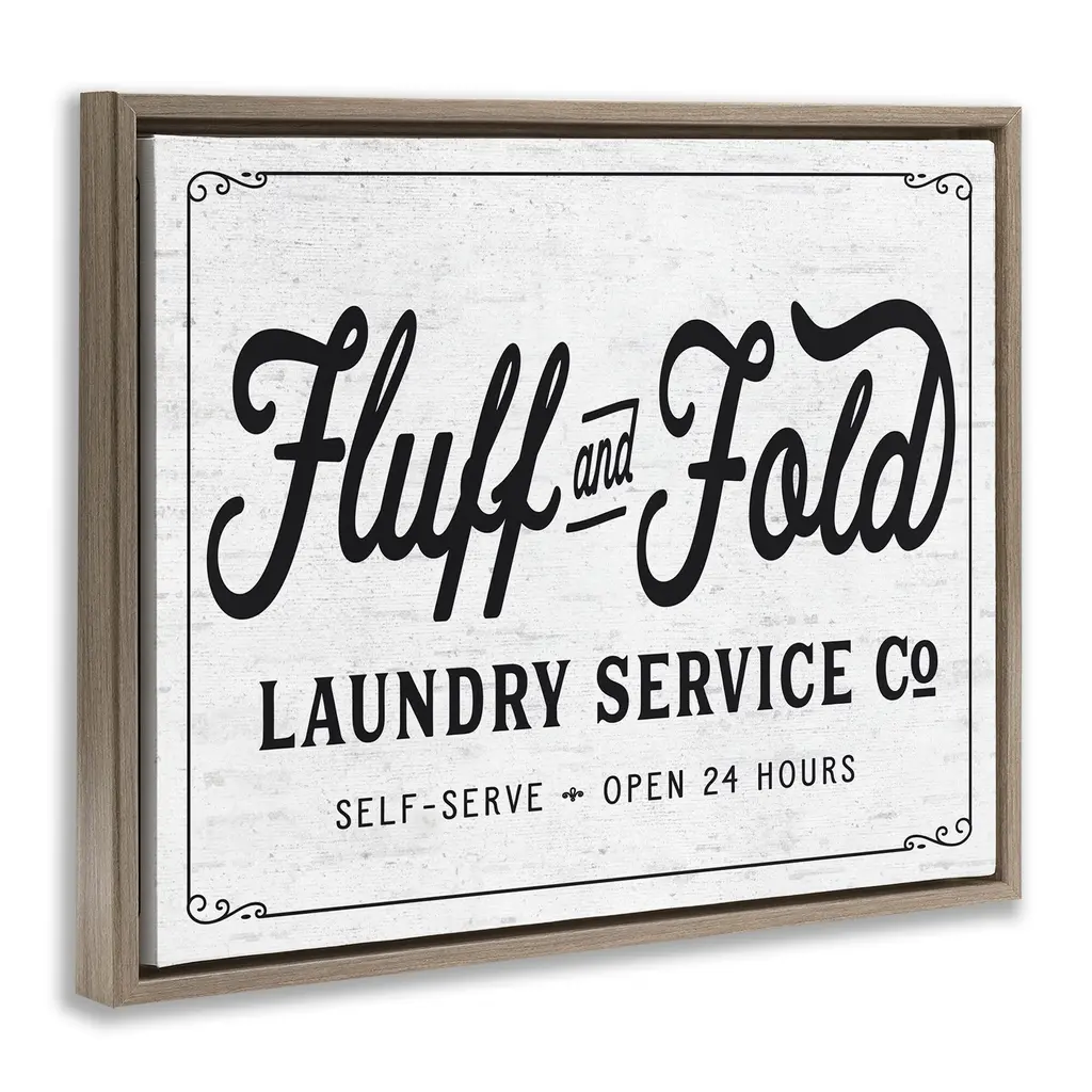 Elevate your home or office to the next level with Stupell Framed Floating Canvas Wall Art. Our premium hand-stretched canvas is mounted securely into a sturdy lightweight frame. The museum-style gap between the wrapped canvas and the box frame gives the illusion of floating artwork. Stupell Wall Art is made in the USA.Features: Dimensions: 21 x 1.7 x 17 Frame, 20 x 1.5 x 16 Canvas ArtFloating Frame Canvas Products are available in sizes 21"x17" and 31"x25". All Floating Frame Canvas Products have a 1.7" Depth.Wall Art is Ready to Hang with Hardware Free Hanging. No Installation required. For Easy Set Up Lean or Layer Artwork on Shelf or Against Wall. Artwork is Permently Fixed into the Frame.Our elevated 1.7" Thick Floating Frame is the perfect complement to our canvas style Wall Art. We use only the highest quality inks in house with industry leading printing solutions. Canvas is hand stretched over a durable wood foundation and then mounted securly into a Modern Box Frame. Made in the USA.Artwork Relates To: Laundry, Vintage, Sign, Phrase, Country, RusticDesign by Lettered and Lined