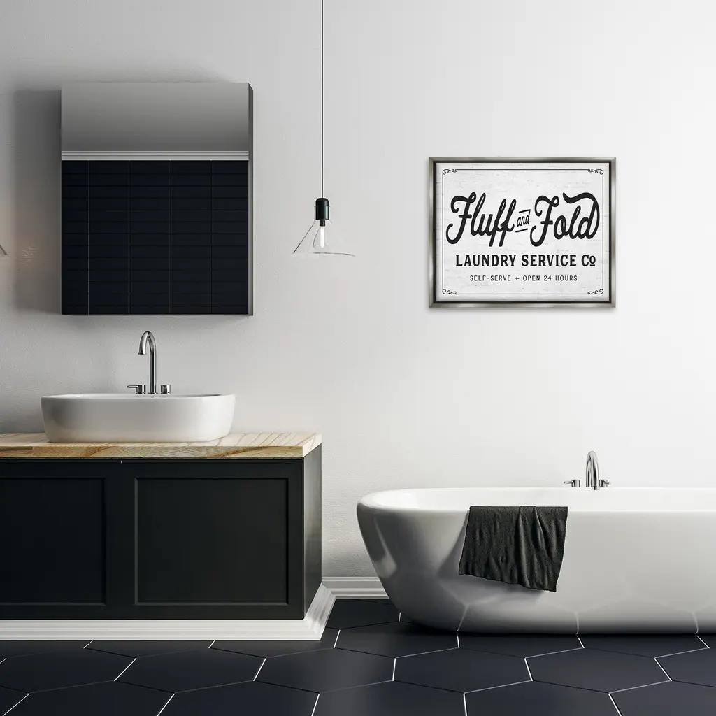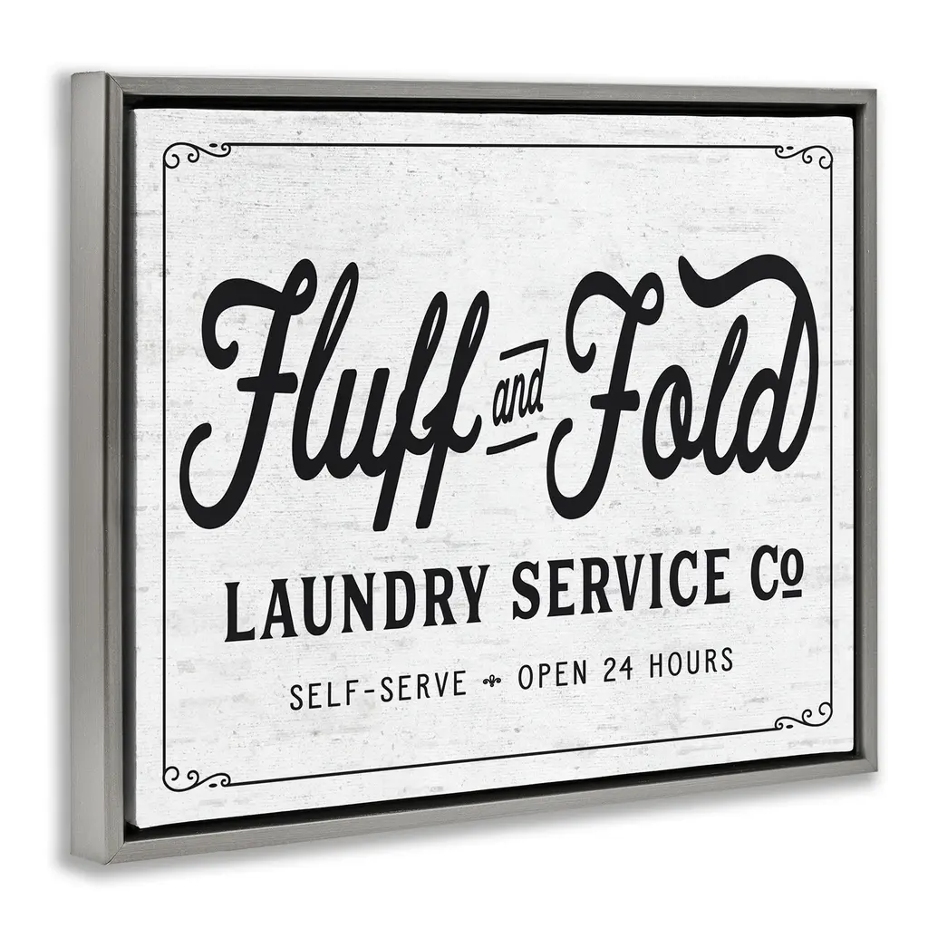 Stupell Fluff And Fold Laundry Room Framed Floater Canvas Wall Art Design By Lettered And Lined - 31 X 25 - Grey