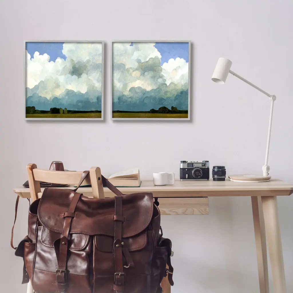 Stupell Fluffy Clouds Countryside Sky Nature Landscape Painting 2 Piece Framed Wall Art, Design By Emma Caroline - Multi - 17 X 17 - Grey