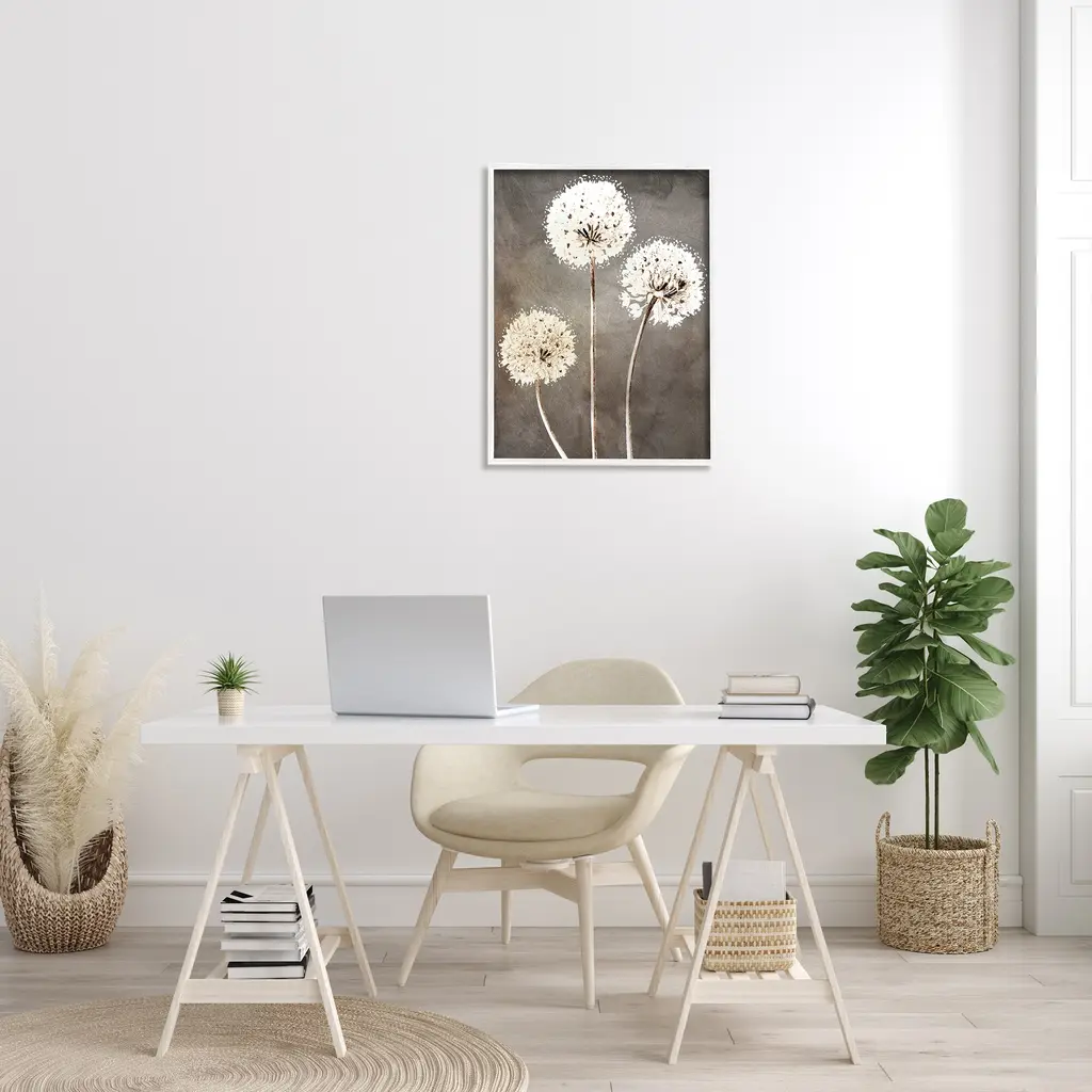 It is time to set up your room with of our fresh new 'Framed Giclee Textured Wall Art' pieces. You may have seen our Wooden or Canvas products, but our framed products are now available in three alluring styles: black, gray farmhouse and white. Our textured artwork will add more depth and dimension to any space. Each piece is mounted with a 1.5 inch thick wood grain frame that is ready to hang! Looking for a statement piece? We have oversized artwork available.Features: Wall Art is Ready to Hang - No Installation or Hardware Needed. For Easy Set Up Lean or Layer Artwork on Shelf or Against Wall.Our giclee prints are carefully mounted on a durable MDF backing, and then perfectly finished in a 1.5 inch thick woodgrain frame. Frame colors include black, gray farmhouse and white. Made In USA.Artwork Relates To: Plant; Flower; Blossom; Dandelion; Design by Kim Allen