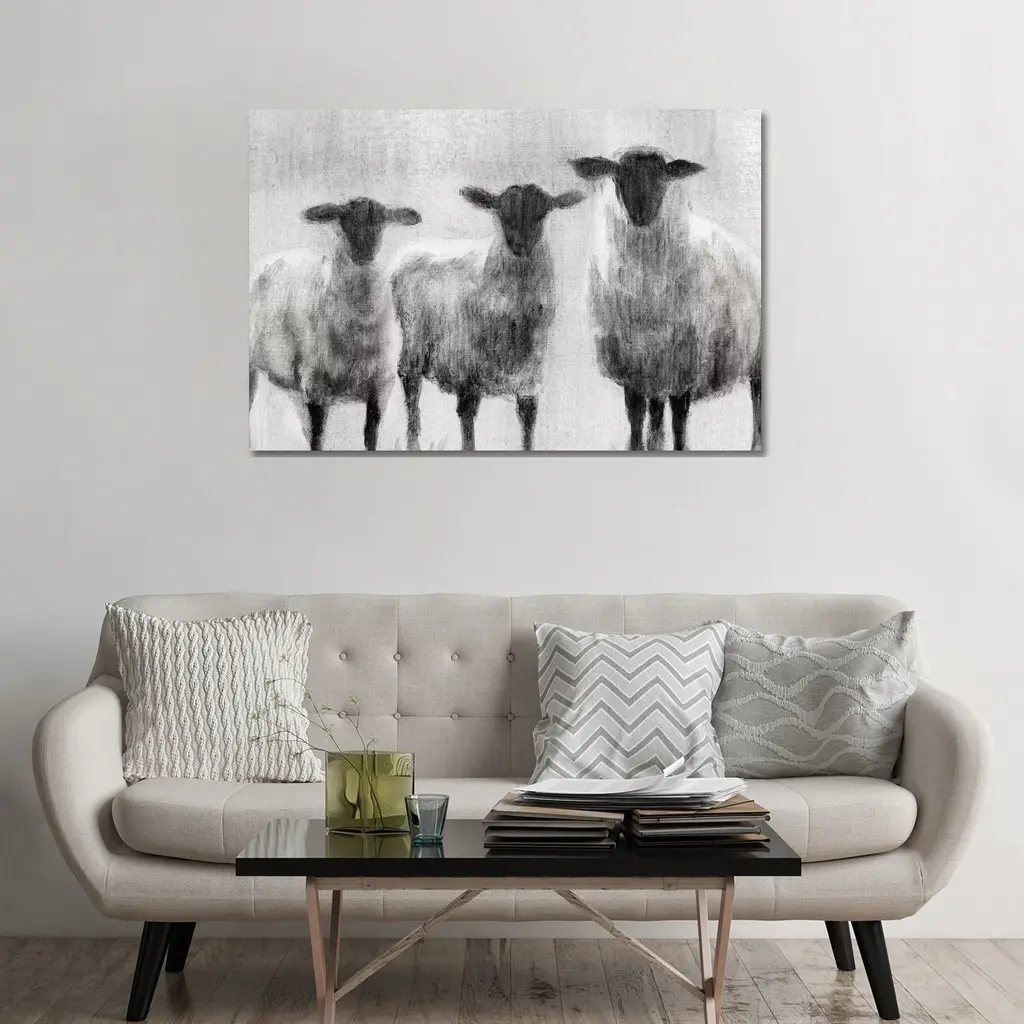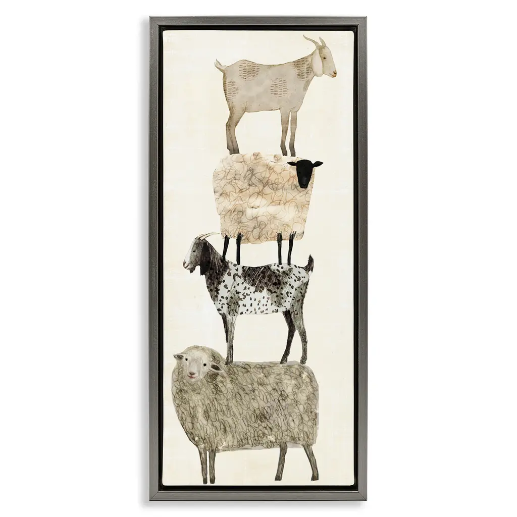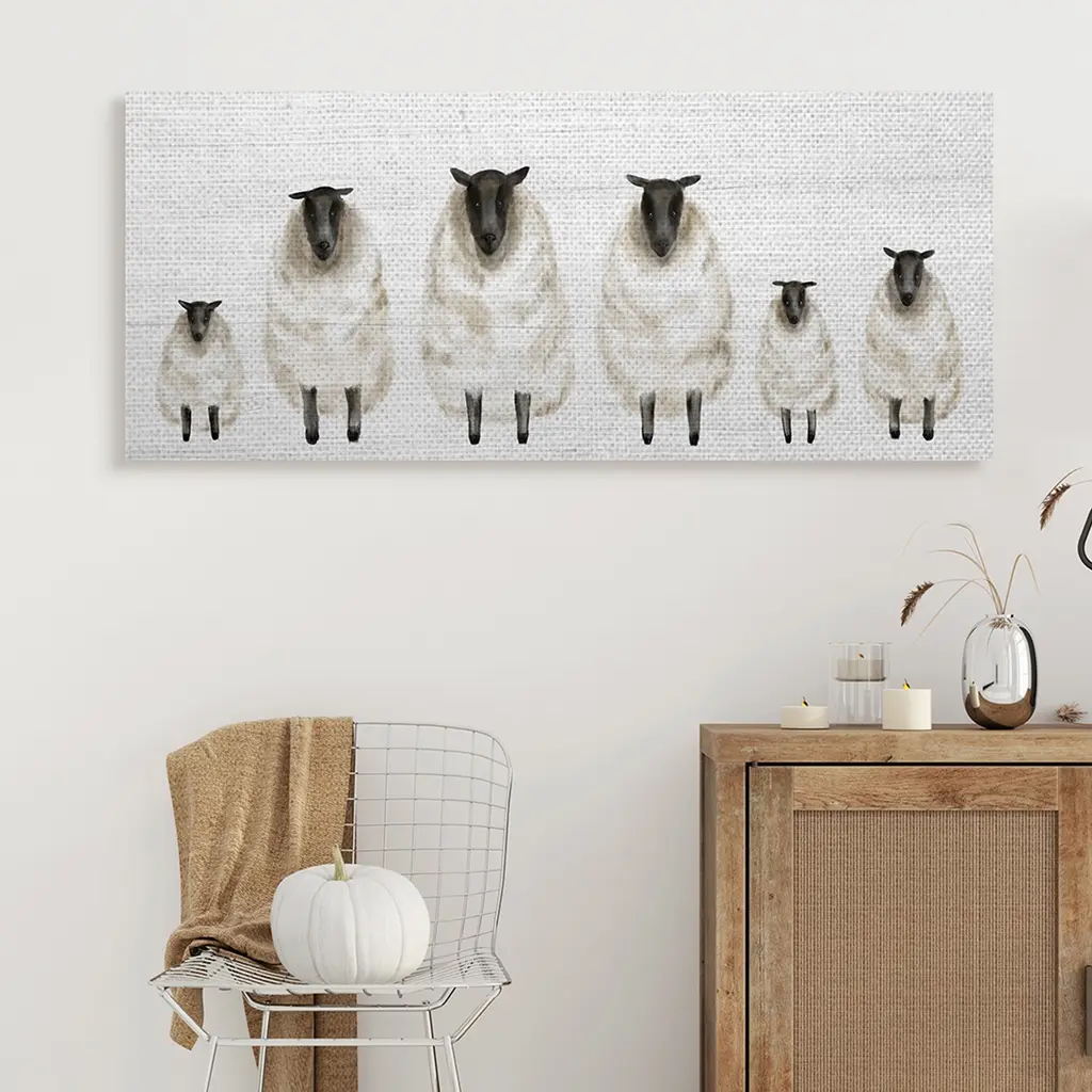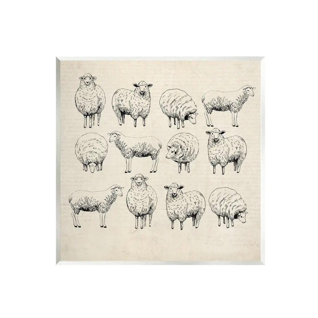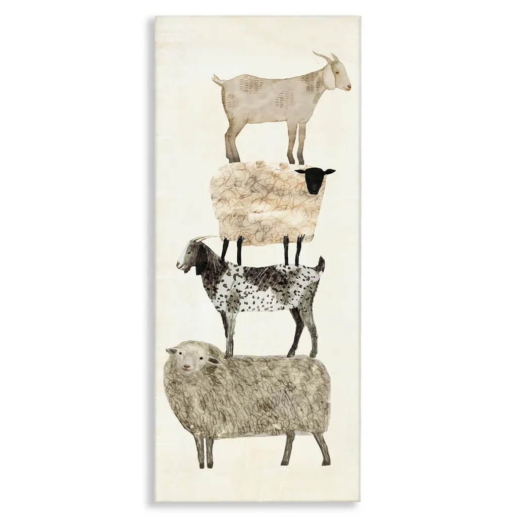 Stupell Fluffy Farm Sheep Minimal White Plank Pattern Canvas Wall Art - 17 X 40