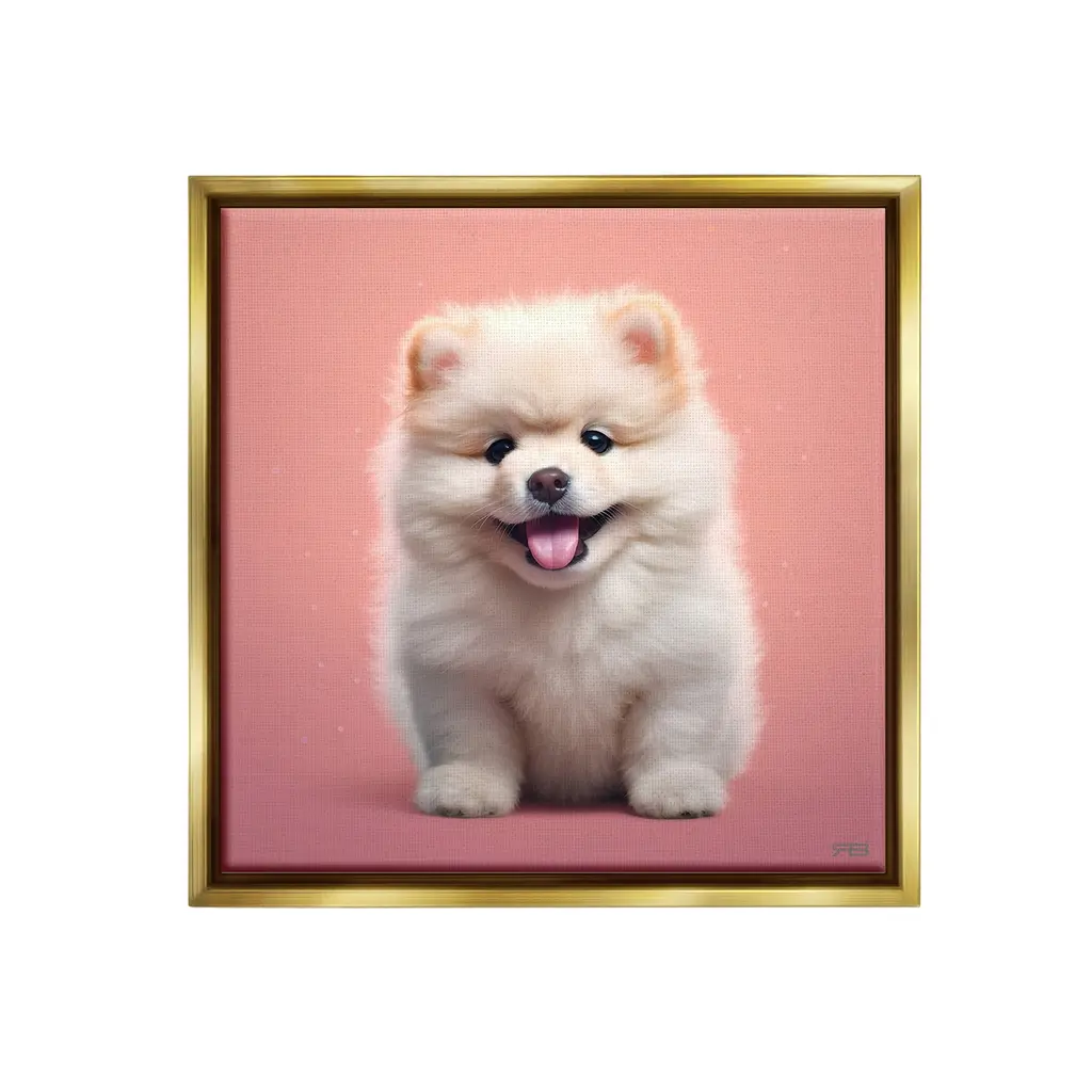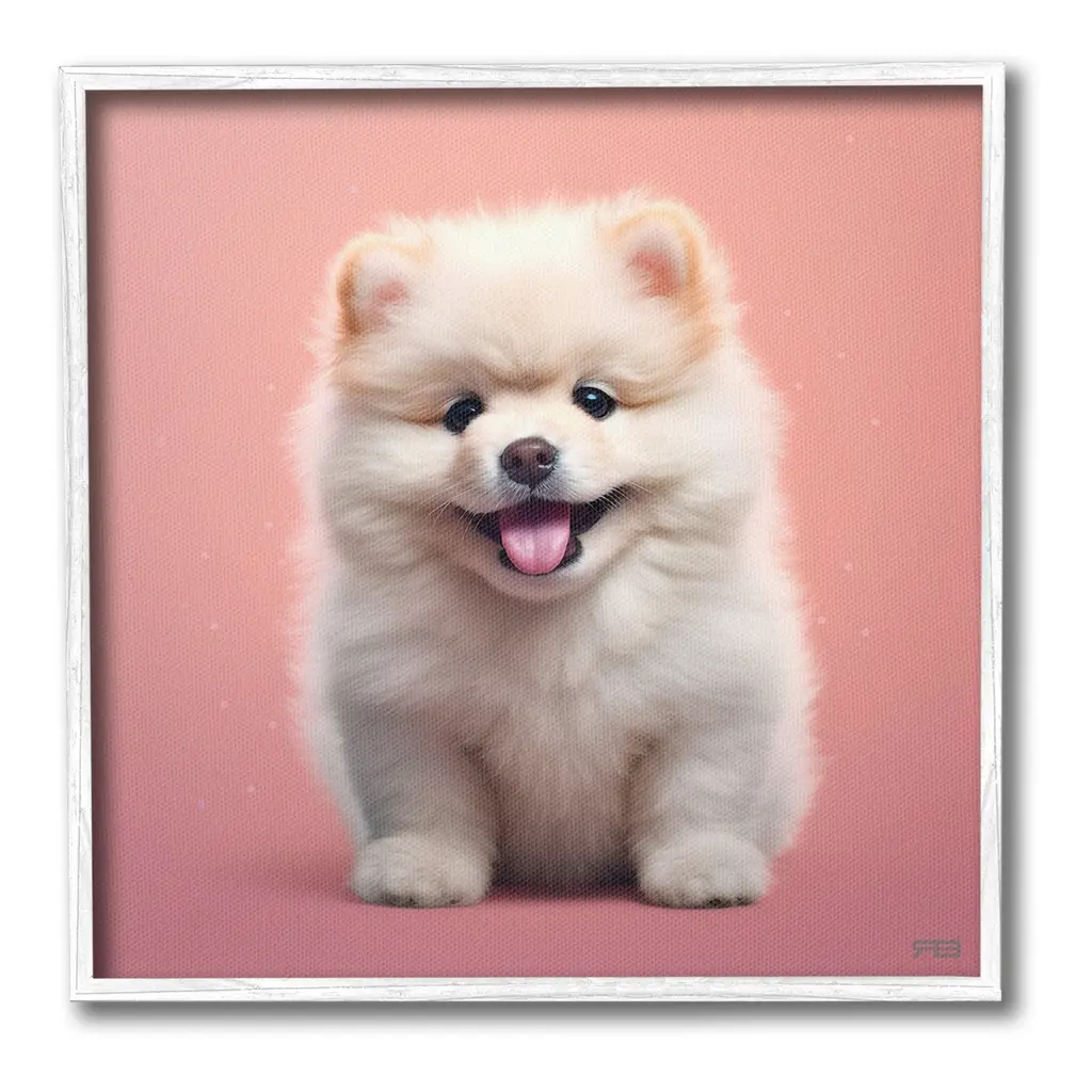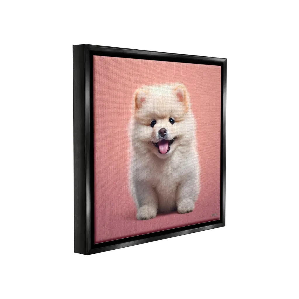 Stupell Fluffy Puppy On Pink Framed Floater Canvas Wall Art Design By Rb - 18 X 18 - Black