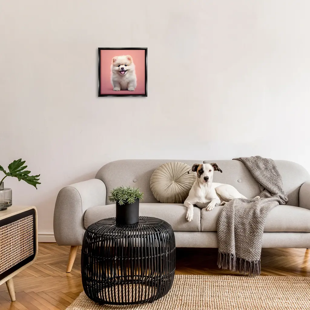 Elevate your home or office to the next level with Stupell Framed Floating Canvas Wall Art. Our premium hand-stretched canvas is mounted securely into a sturdy lightweight frame. The museum-style gap between the wrapped canvas and the box frame gives the illusion of floating artwork. Stupell Wall Art is made in the USA.Features: Dimensions: 18 x 1.7 x 18 Frame, 17 x 1.5 x 17 Canvas ArtFloating Frame Canvas Products are available in sizes 18"x18" and 25"x25". All Floating Frame Canvas Products have a 1.7" Depth.Wall Art is Ready to Hang with Hardware Free Hanging. No Installation required. For Easy Set Up Lean or Layer Artwork on Shelf or Against Wall. Artwork is Permently Fixed into the Frame.Our elevated 1.7" Thick Floating Frame is the perfect complement to our canvas style Wall Art. We use only the highest quality inks in house with industry leading printing solutions. Canvas is hand stretched over a durable wood foundation and then mounted securly into a Modern Box Frame. Made in the USA.Artwork Relates To: Animal, Canine, Dog, Mammal, Pet, Puppy, White Dog, Eskimo DogDesign by RB